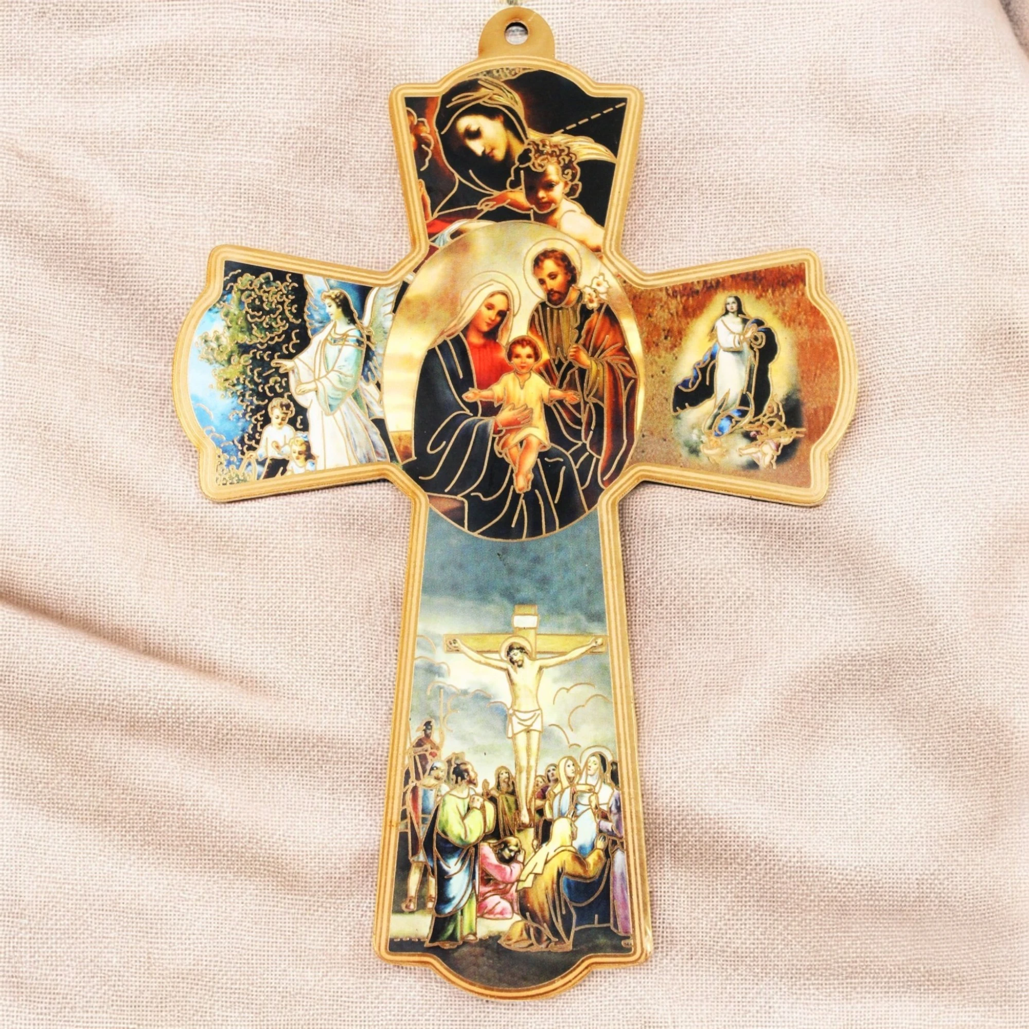 This image shows a cheerful Christmas hanging cross, perfect for the holiday season. The cross features a classic houndstooth pattern in green and white, with “Merry Christmas” boldly displayed. The message is creatively split, with “Merry” on one side and “Christmas” on the other, making it a delightful addition to any Christmas décor. The design adds a festive charm to your home, making it a stylish decoration for the holidays or a thoughtful gift.
