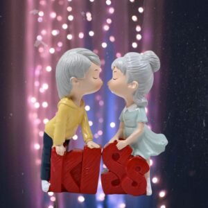This image shows a small figurine of a couple sitting together. The figurine measures 5.5 cm in height and 6.5 cm in width. The couple is seated on a heart-shaped base with the word “SWEET” spelled out in white letters. The figurine is detailed with the couple wearing different colored outfits, adding a charming touch to the piece.