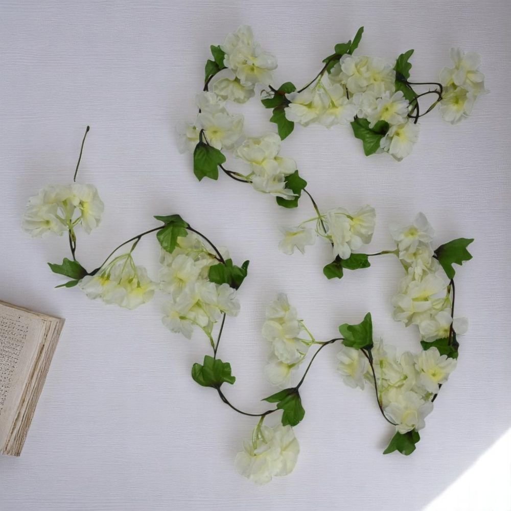 Bring an ethereal touch to your home with the Off White Cherry Blossom Vine Flower Garland. Each garland stretches a generous 7.5 feet, perfect for wrapping over doorways, windows, or headboards. The soft off-white hue of these cherry blossoms adds a delicate, timeless elegance that complements any decor style.