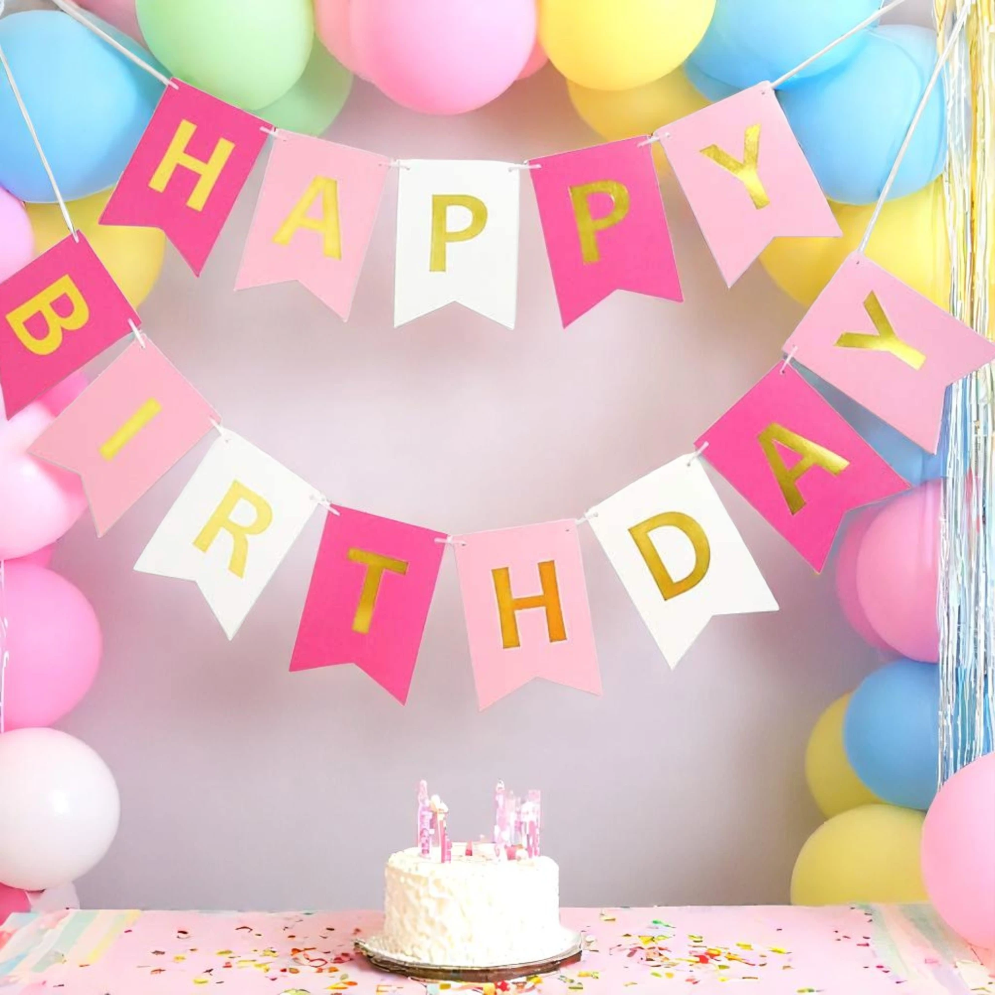 Celebrate in style with our Pink Color Flag Happy Birthday Banner! This festive banner adds a pop of color to any birthday bash, creating a cheerful atmosphere that’s perfect for all ages. Crafted from durable materials, it’s easy to hang and reusable for future celebrations.