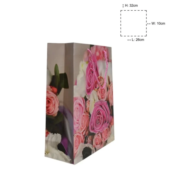 Brighten up your gifting game with our Pink Peach Roses with Rings Paper Bags (Set of 6) designed to add a touch of beauty and charm. These small-sized bags measuring 26 x 32 x 10 are perfect for holding delightful surprises. With their stunning rose pattern and elegant ring accents, they are sure to impress.