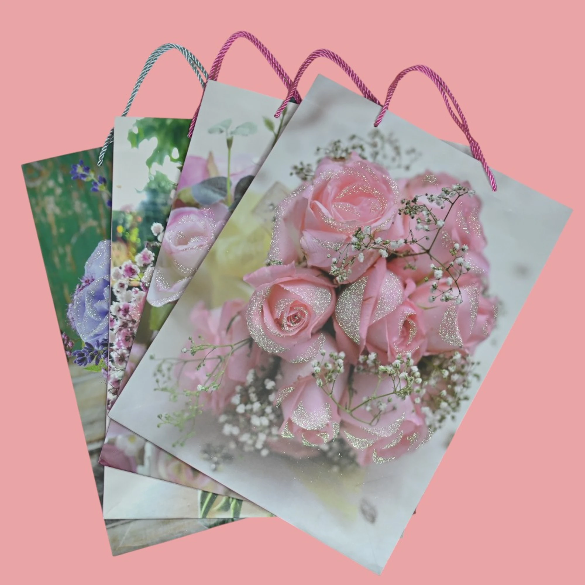 Pink Roses Paper Bags (Set of 6) Medium Size