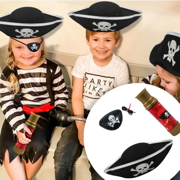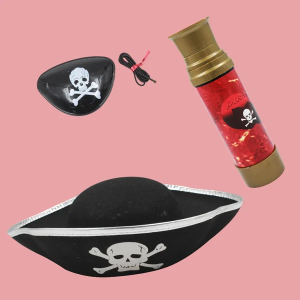 Embark on a swashbuckling adventure with our Pirate Adventure Set, perfect for little buccaneers and pirate enthusiasts! This set includes a classic pirate hat, a rugged eye patch, and a trusty telescope, everything you need to roam the high seas in search of treasure and excitement.