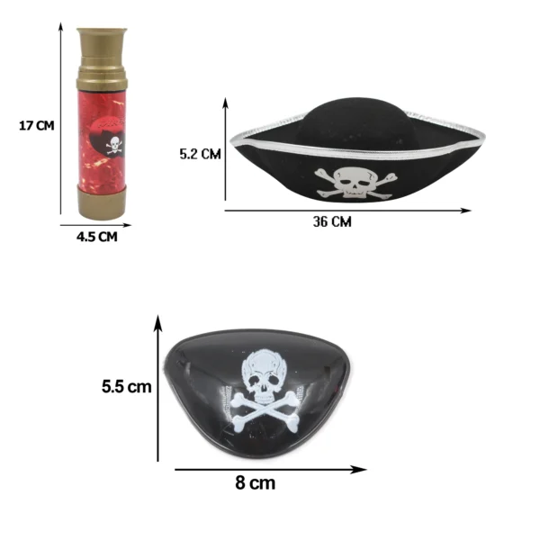 – Classic Pirate Hat: Crafted from soft, durable materials that ensure comfort and a snug fit. With its iconic Jolly Roger design, it’s sure to make any pirate feel like the captain of the ship.
