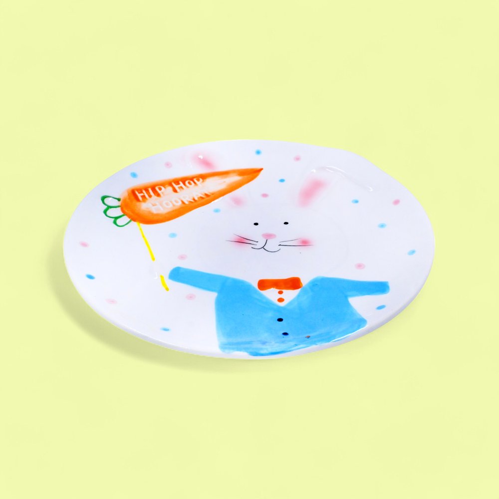 Introduce a touch of whimsy to your child’s mealtime with this delightful bunny-themed ceramic plate. Perfectly sized for little hands, this plate features an adorable bunny dressed in a blue jacket and red bow tie, bringing a playful and cheerful vibe to the table. The vibrant colors and cute design are sure to captivate your child’s imagination, making every meal an enjoyable experience. Crafted from high-quality ceramic, this plate is both durable and easy to clean, ensuring it withstands the rigors of daily use. Ideal for serving snacks, desserts, or small meals, this charming plate is a must-have addition to your kitchenware collection. Make mealtime fun and engaging with this enchanting bunny ceramic plate!