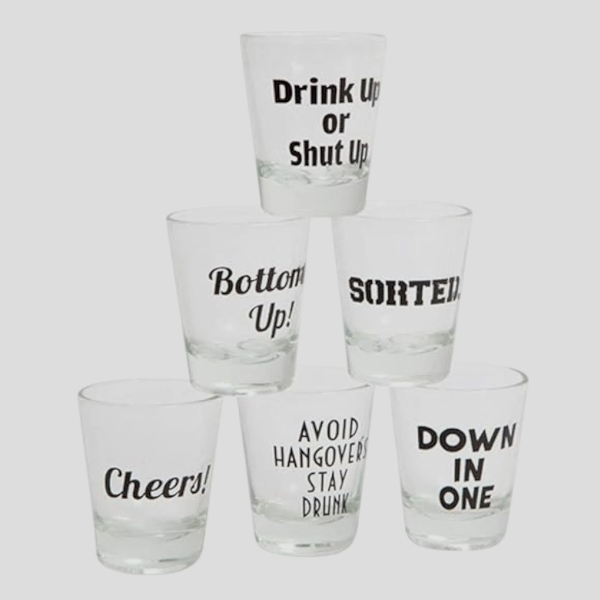 These shot glasses make a fantastic gift for the life of the party or for those who just love a good laugh. Cheers to good times and great company!