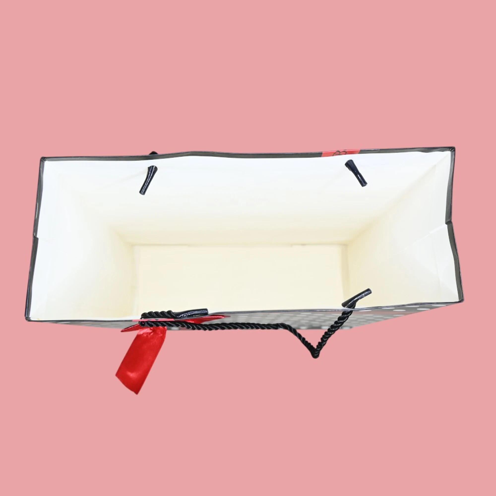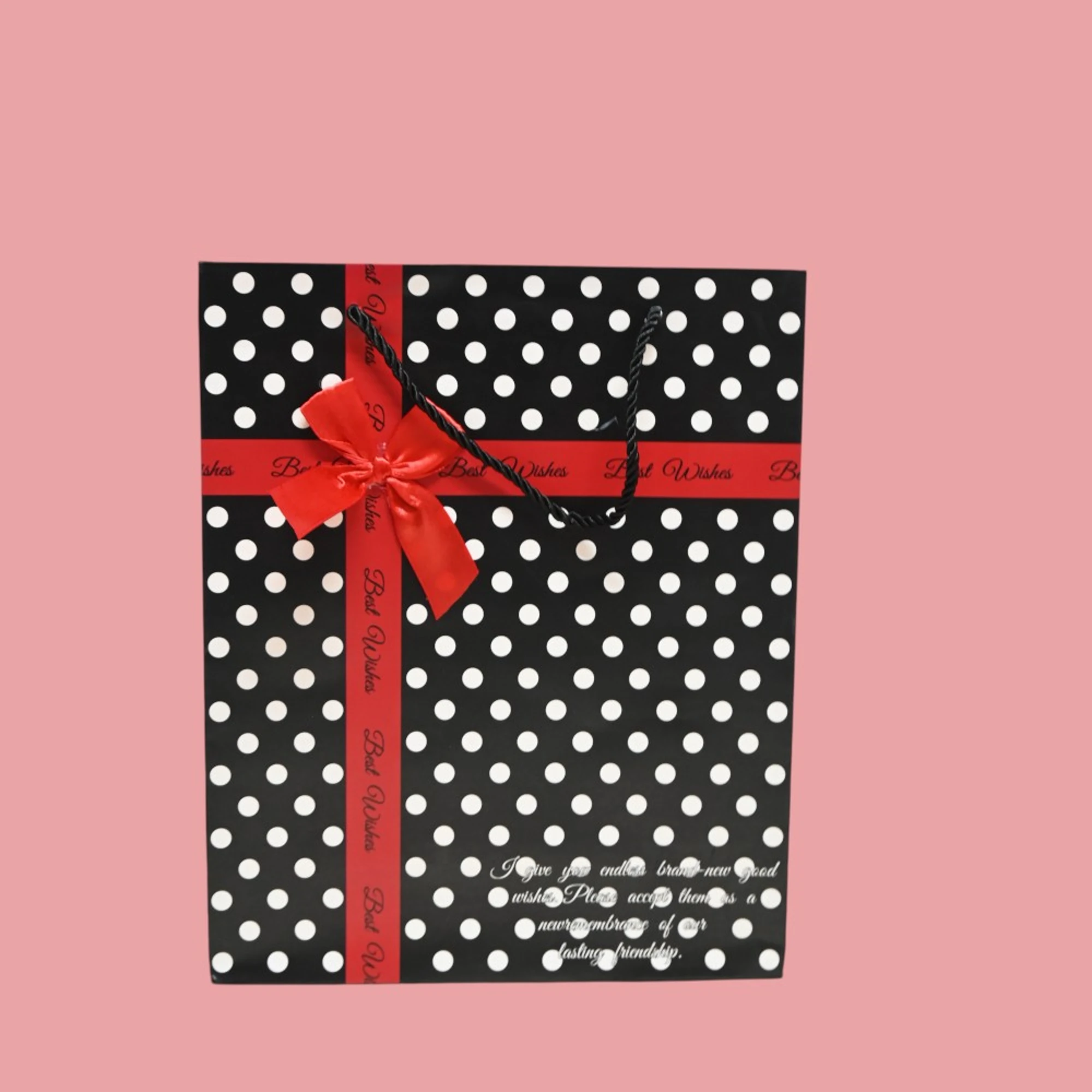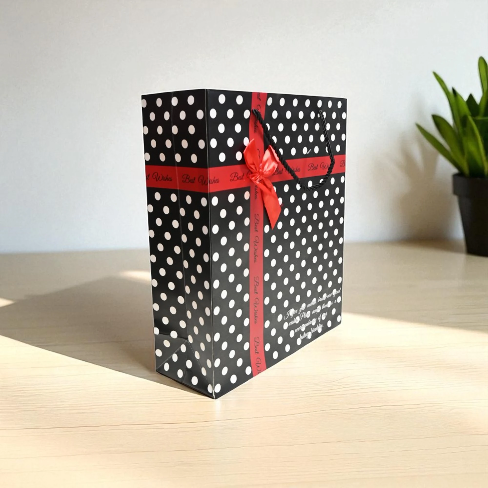 Bring a dash of charm to your gift-giving with these delightful Polka Dotted Paper Gift Bags in a classic black color. Each bag measures 26x32x10cm, perfect for wrapping small treasures and party favors.