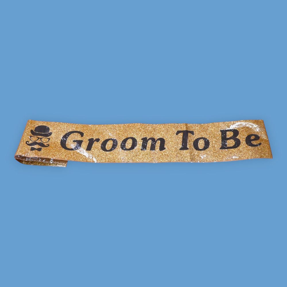 Light up any pre-wedding celebration with the Groom to Be Glitter Gold Sash! This stunning sash, designed especially for the groom himself, ensures he stands out in style. Perfect for bachelor parties, engagement celebrations, or even those cheeky photo sessions, this sash is both a fun and sophisticated addition to your wedding festivities.