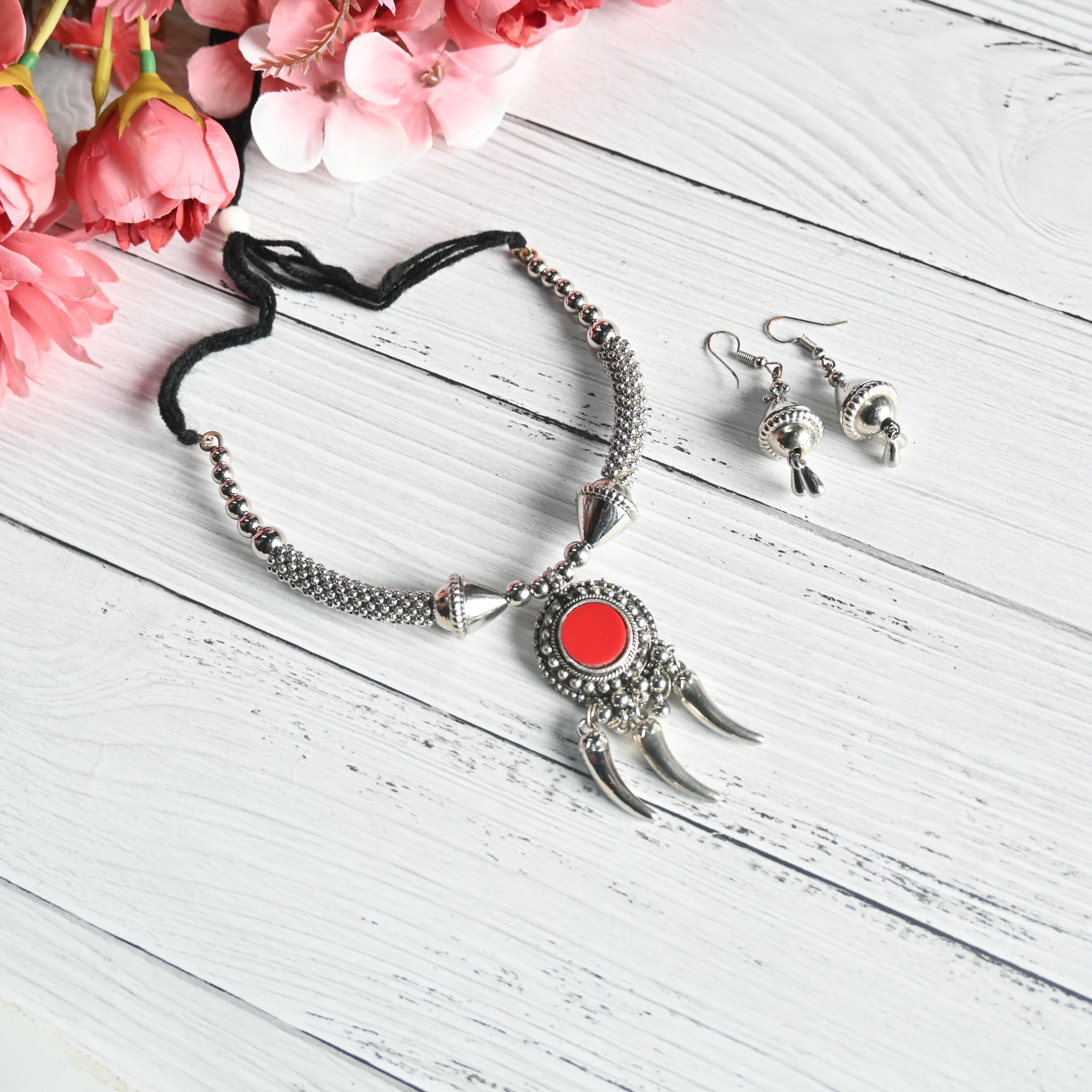 Red Stone Oxidized Navratri Jewelry Set