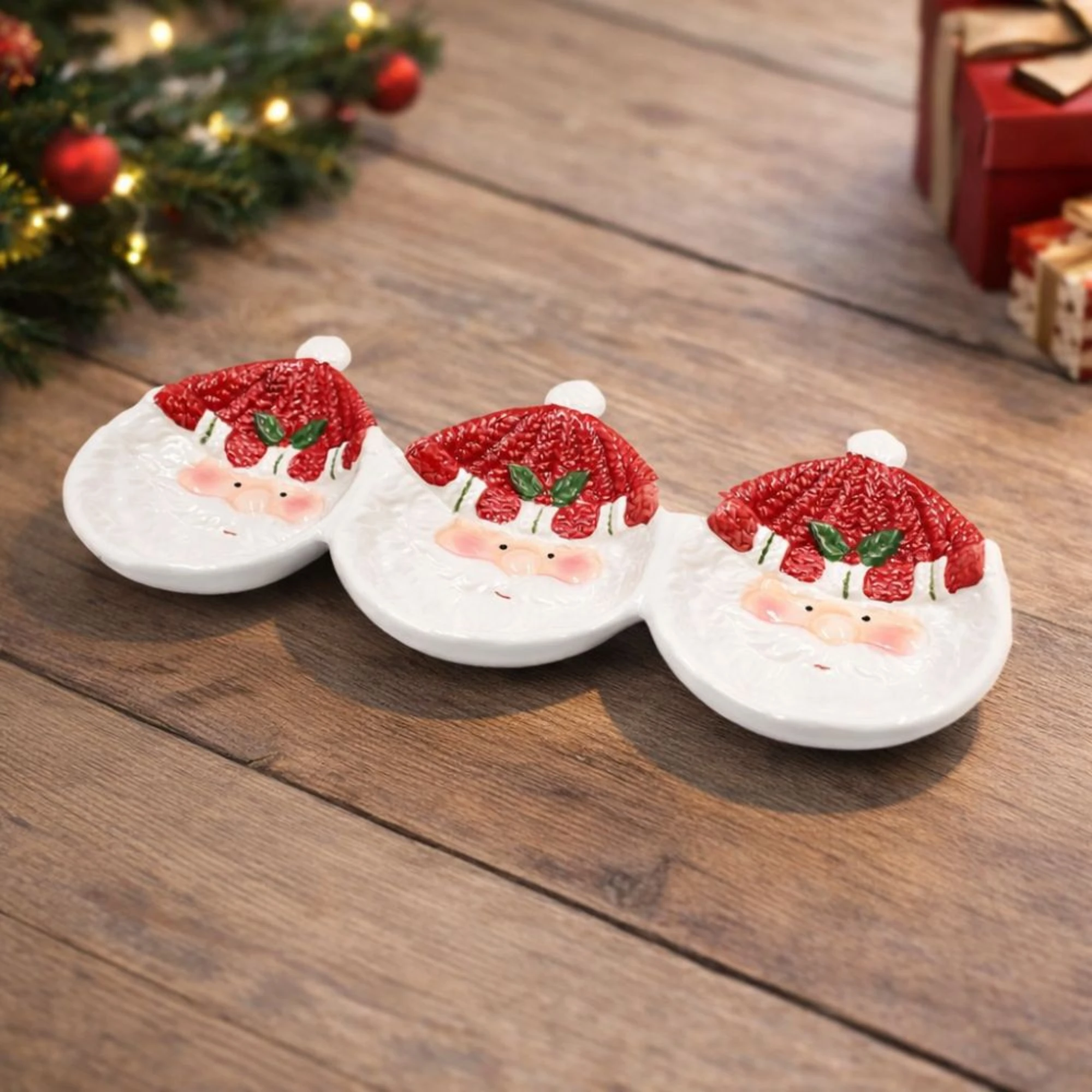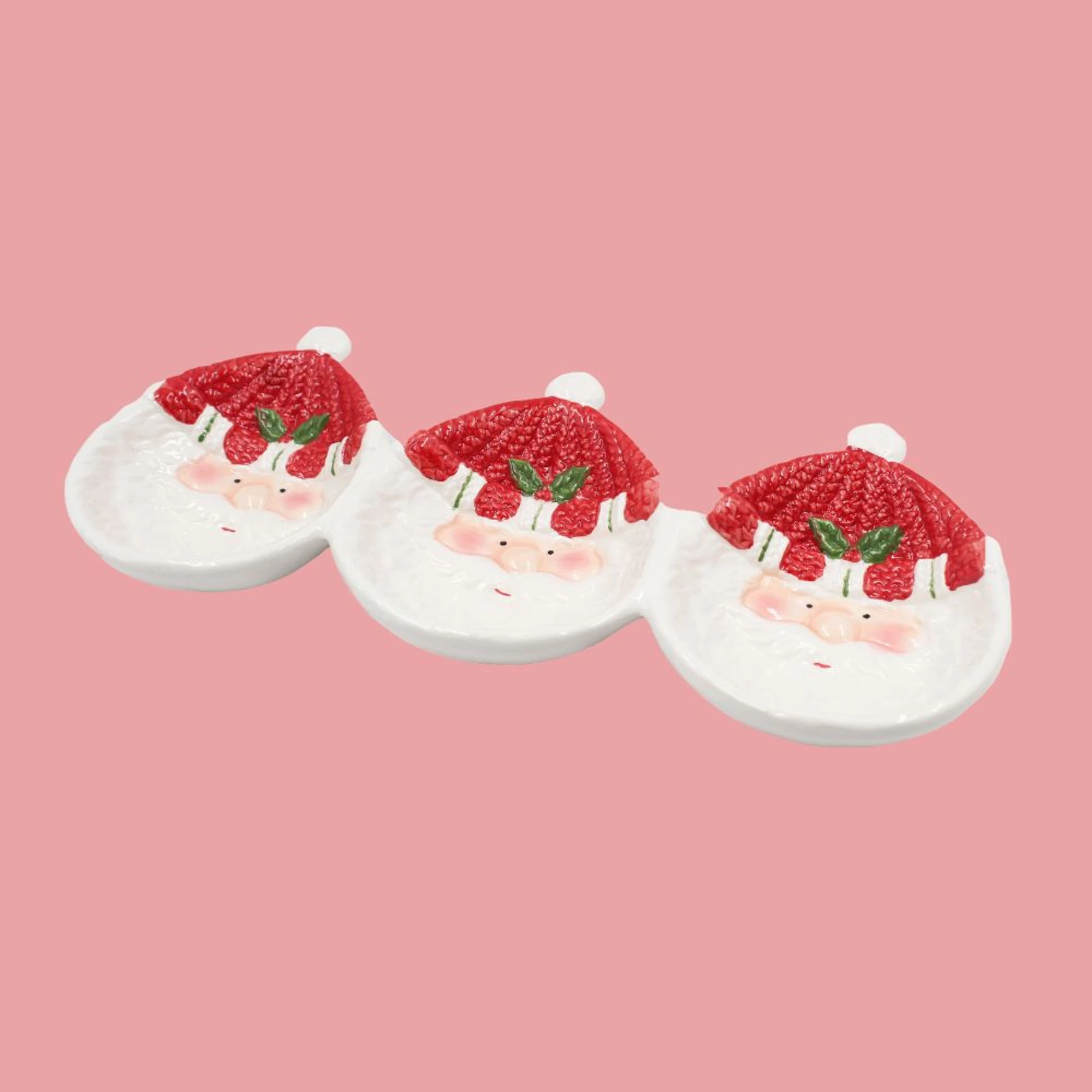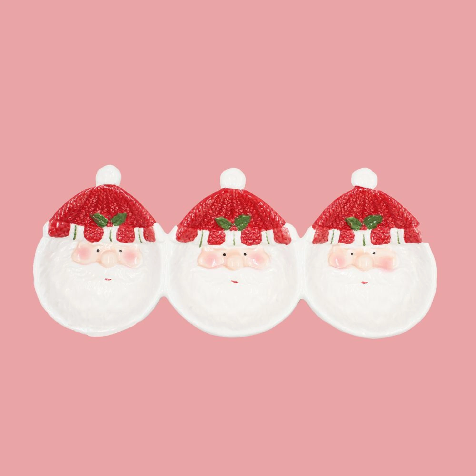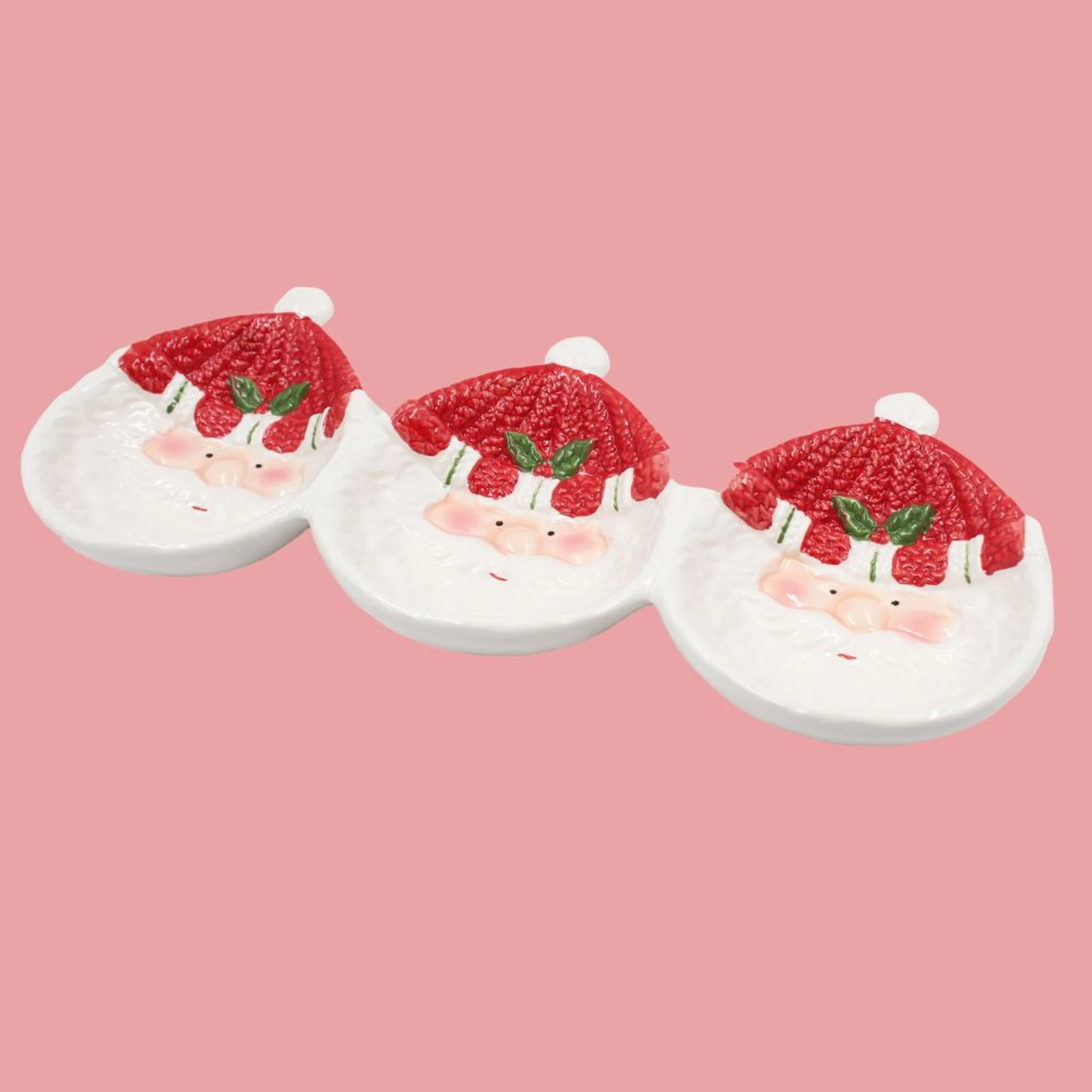 Spread holiday cheer and make your snacks the star of the show with this delightful Santa 3 Face Snack Tray.