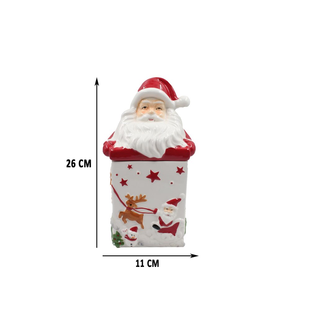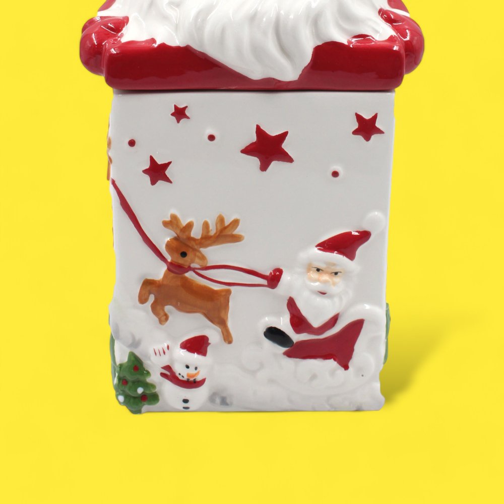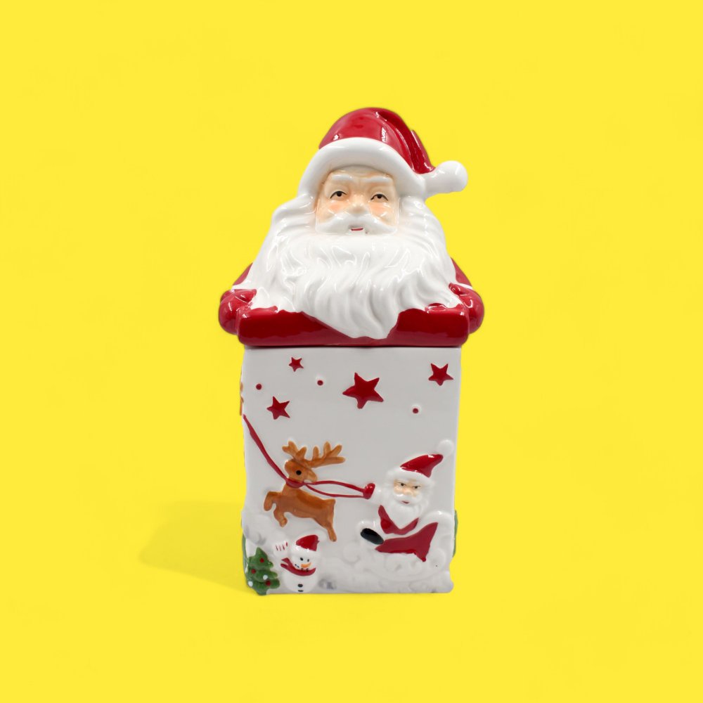 Whether you use it to store sweets, show it off as a centerpiece, or gift it to someone special, the Santa on Sleigh Jar with Santa Face Lid brings a cozy warmth and a splash of merry magic into your holiday season, making it truly unforgettable.
