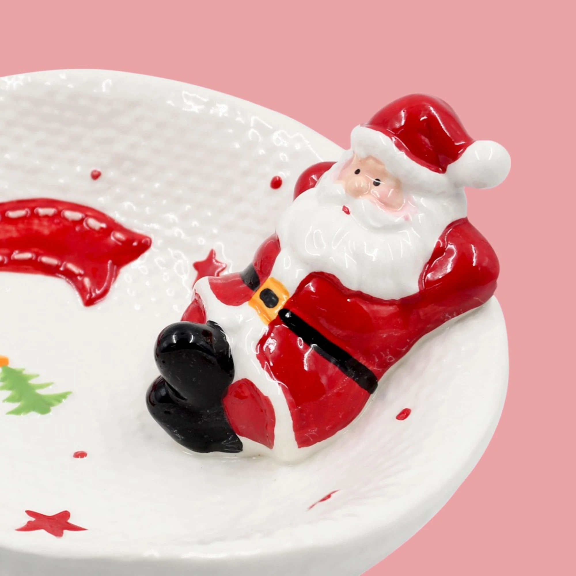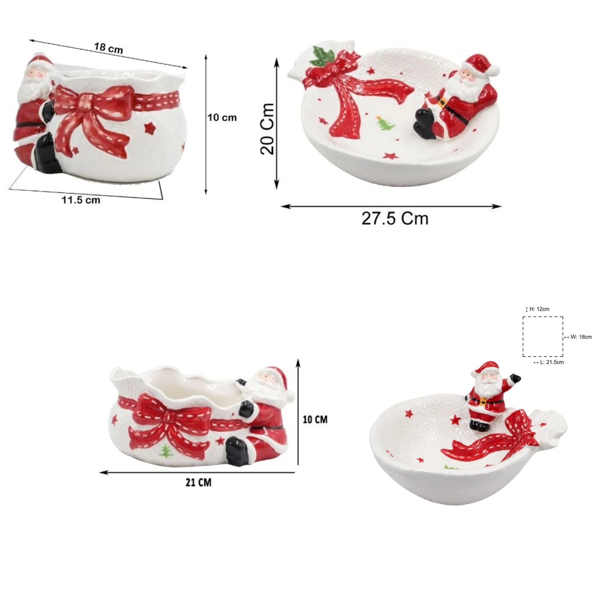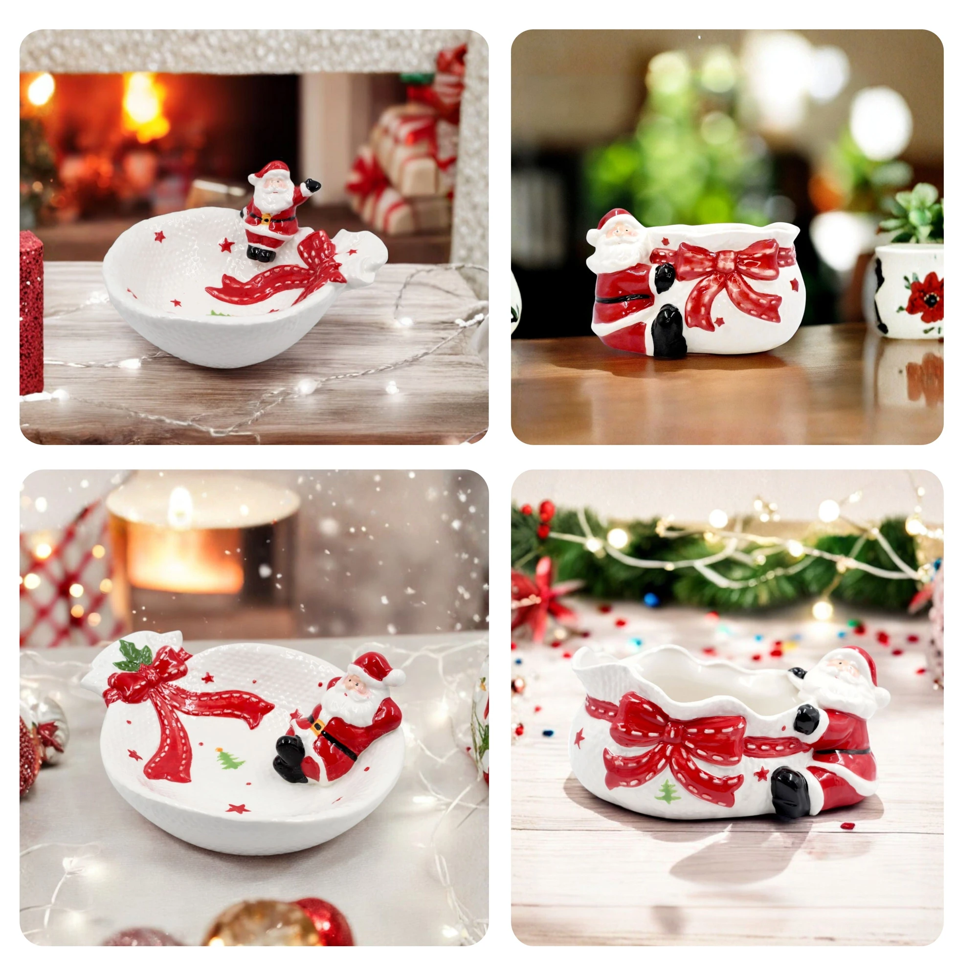 – Unique Designs: Watch Santa and his snowman friend bring gifts to life as they hold a deep serving bowl, perfect for snacks and treats.