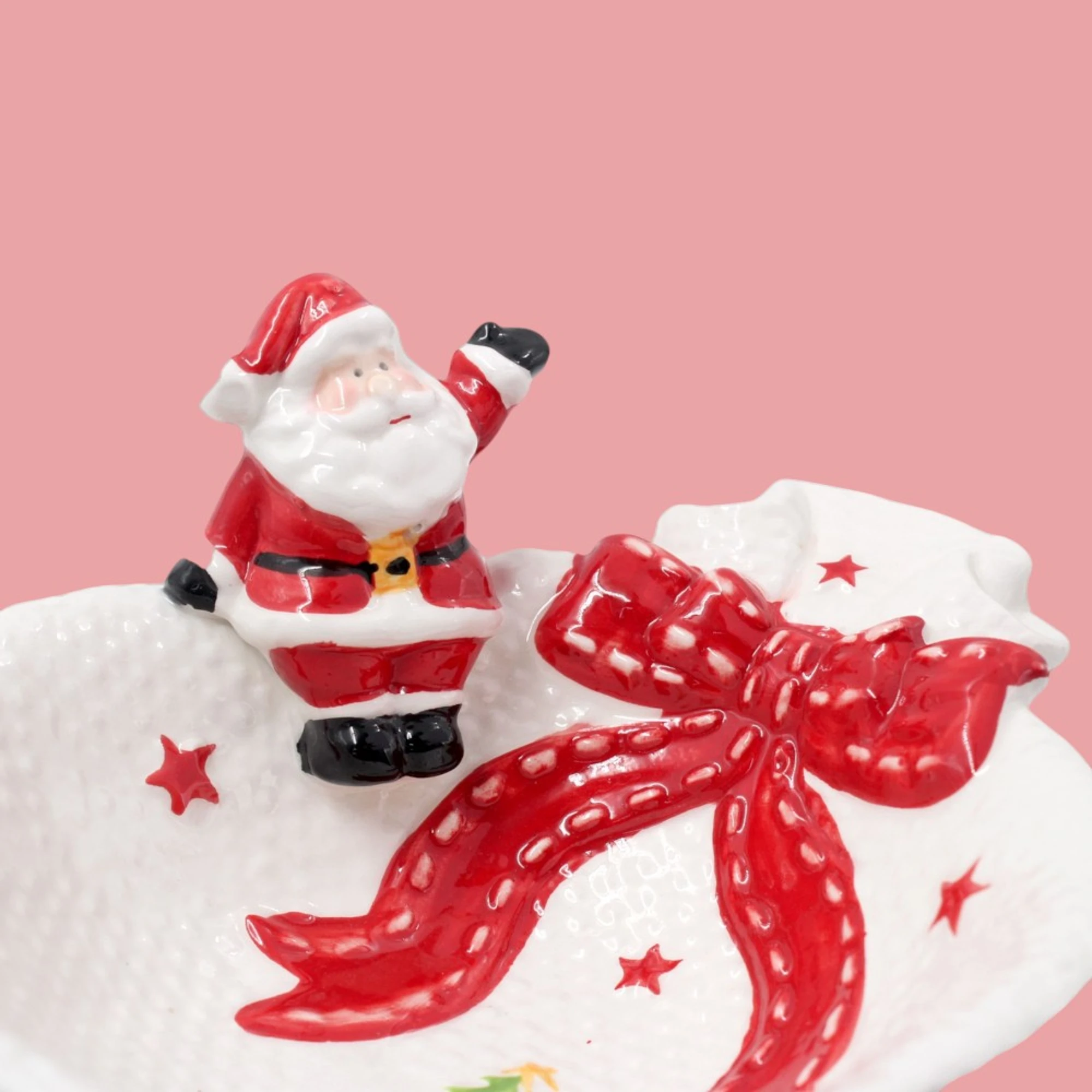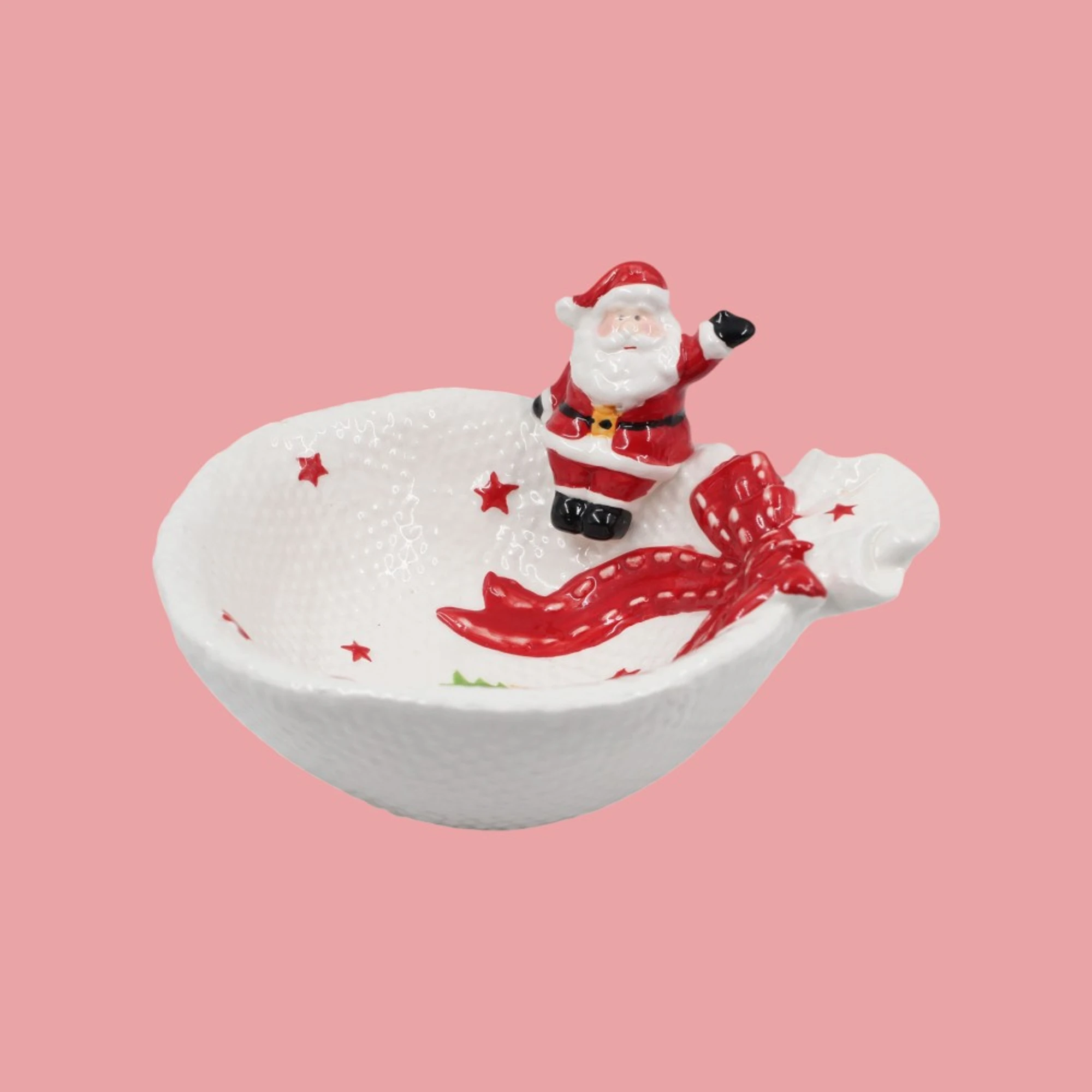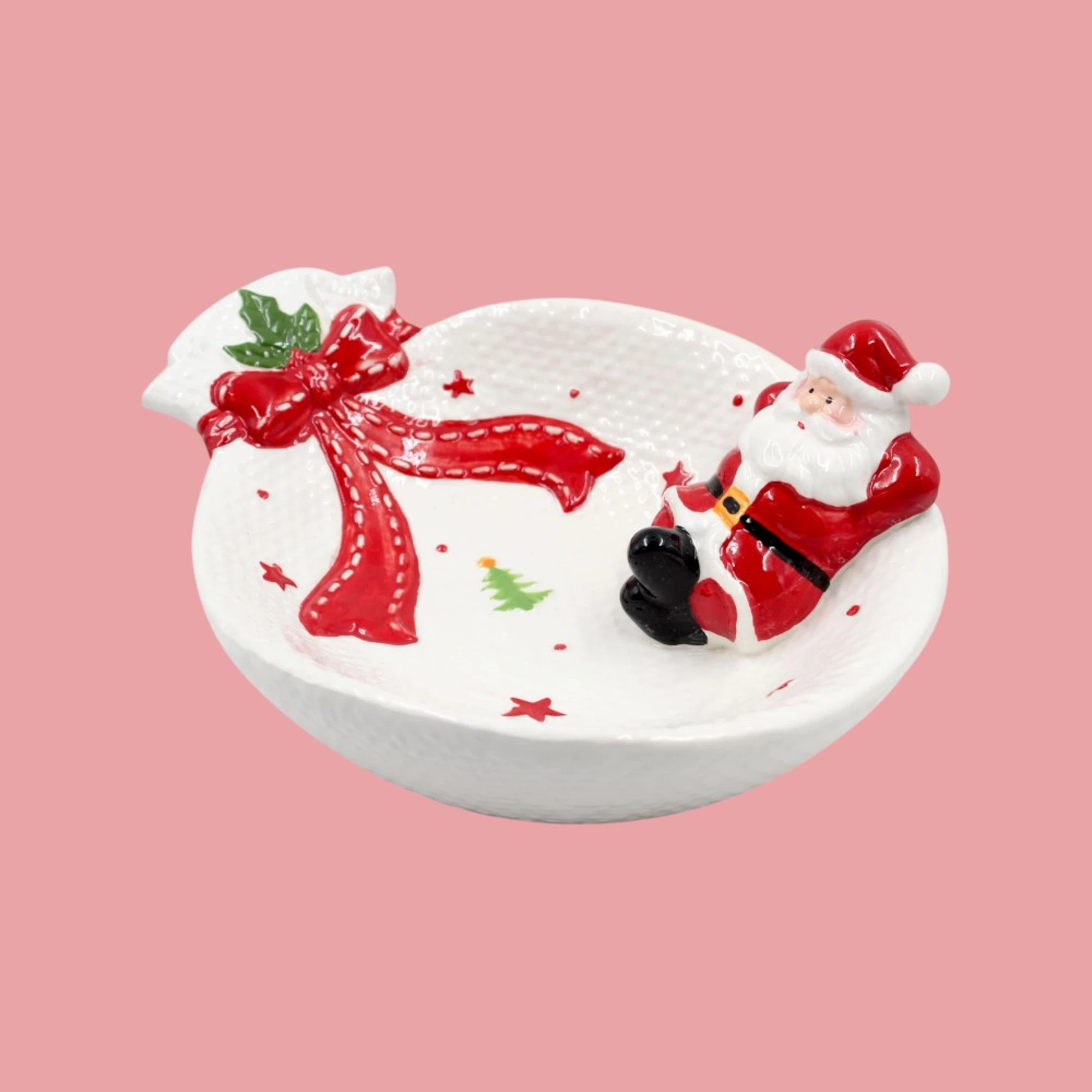 – Unique Designs: Watch Santa and his snowman friend bring gifts to life as they hold a deep serving bowl, perfect for snacks and treats.