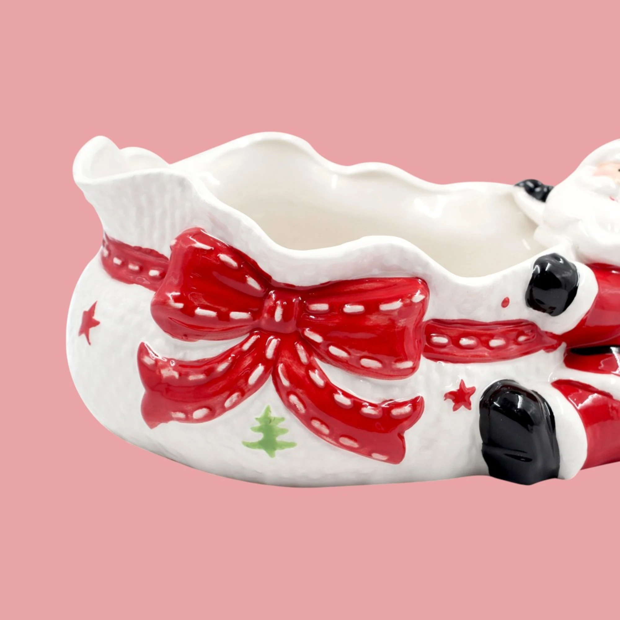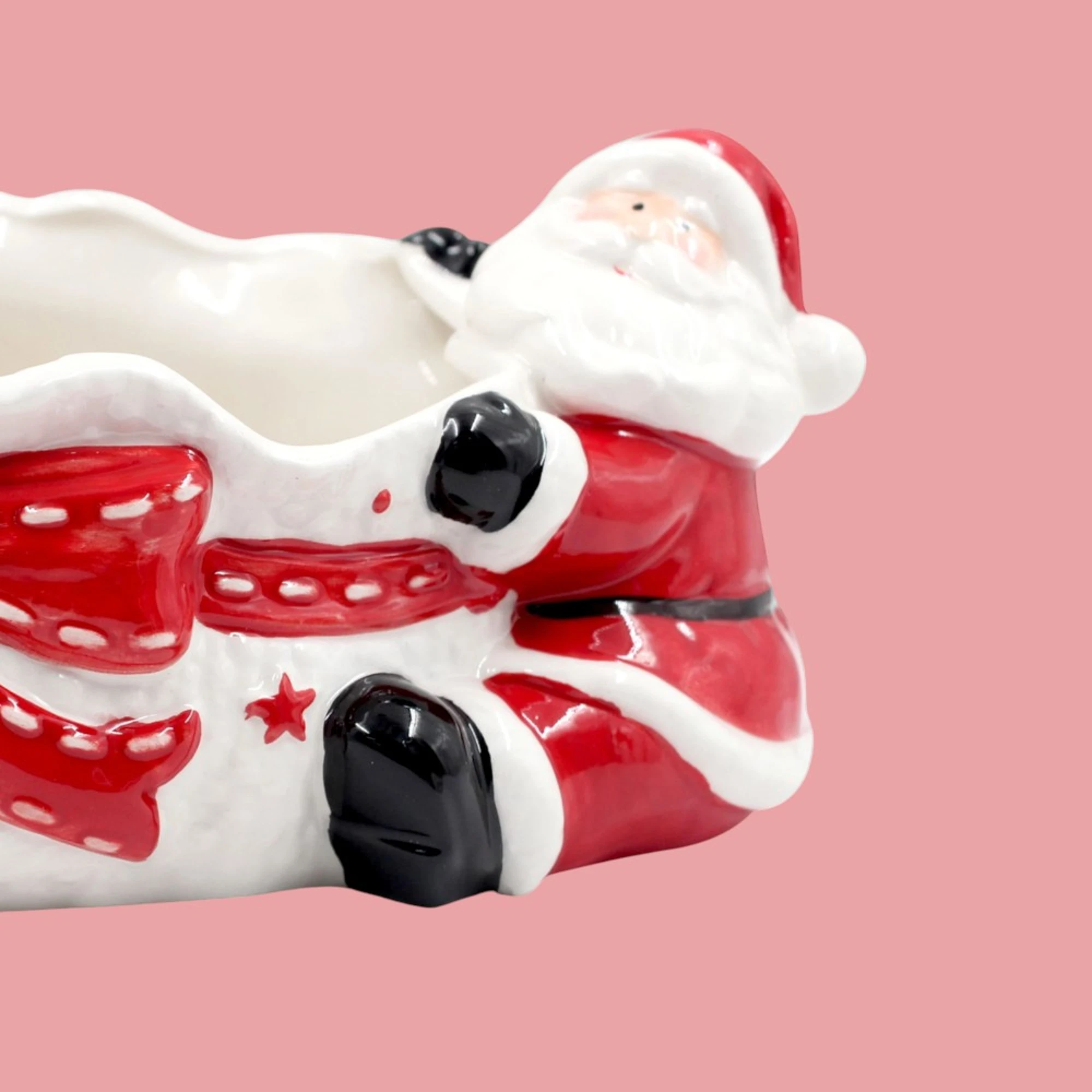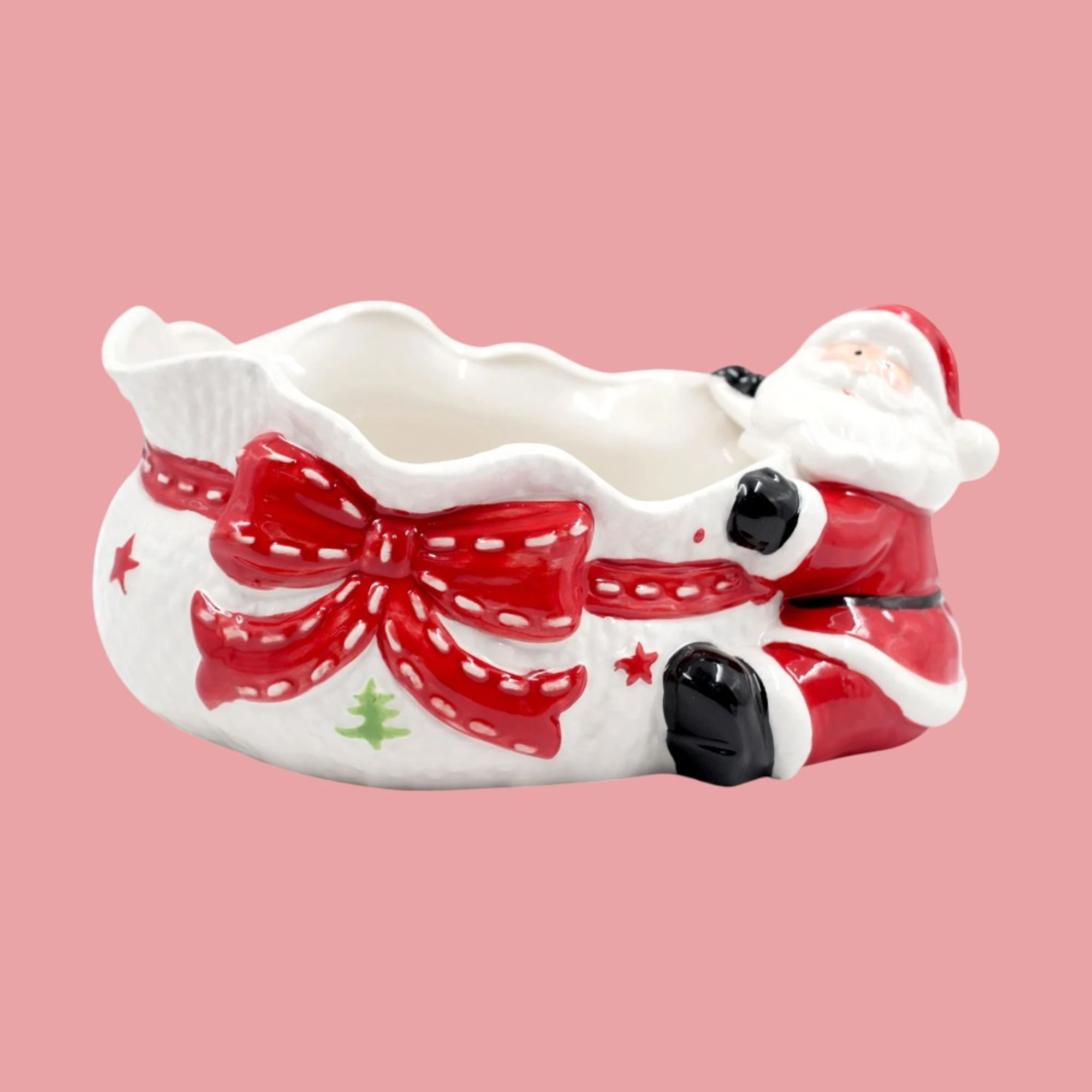 Get ready to spread the festive cheer with the Santa Gift Bag Serving Bowl Set! These charming bowls feature delightful scenes with Santa and his adventurous snowman buddy, capturing the joy of the holiday spirit.