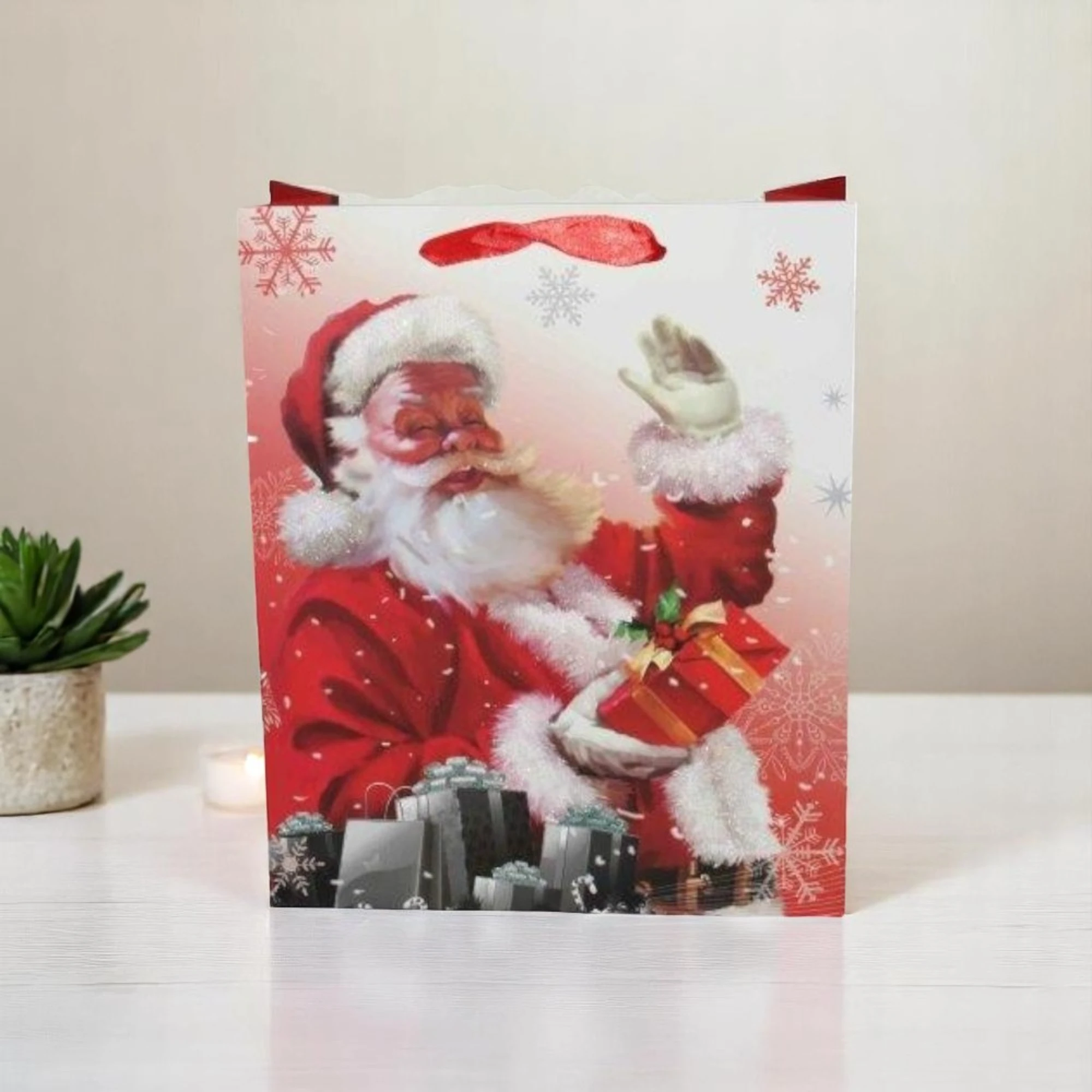 – Festive Design: Each bag features a charming Santa Claus design that will make any gift look extra special.
