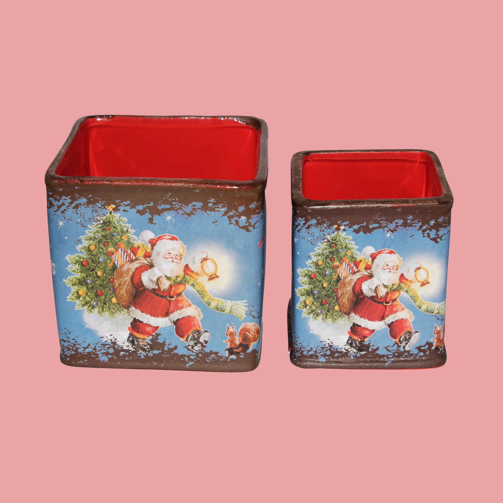 Get ready for the holiday season with our Santa Kitchen Pots SQ Set of 2! These charming pots are perfect for adding festive flair to your kitchen.