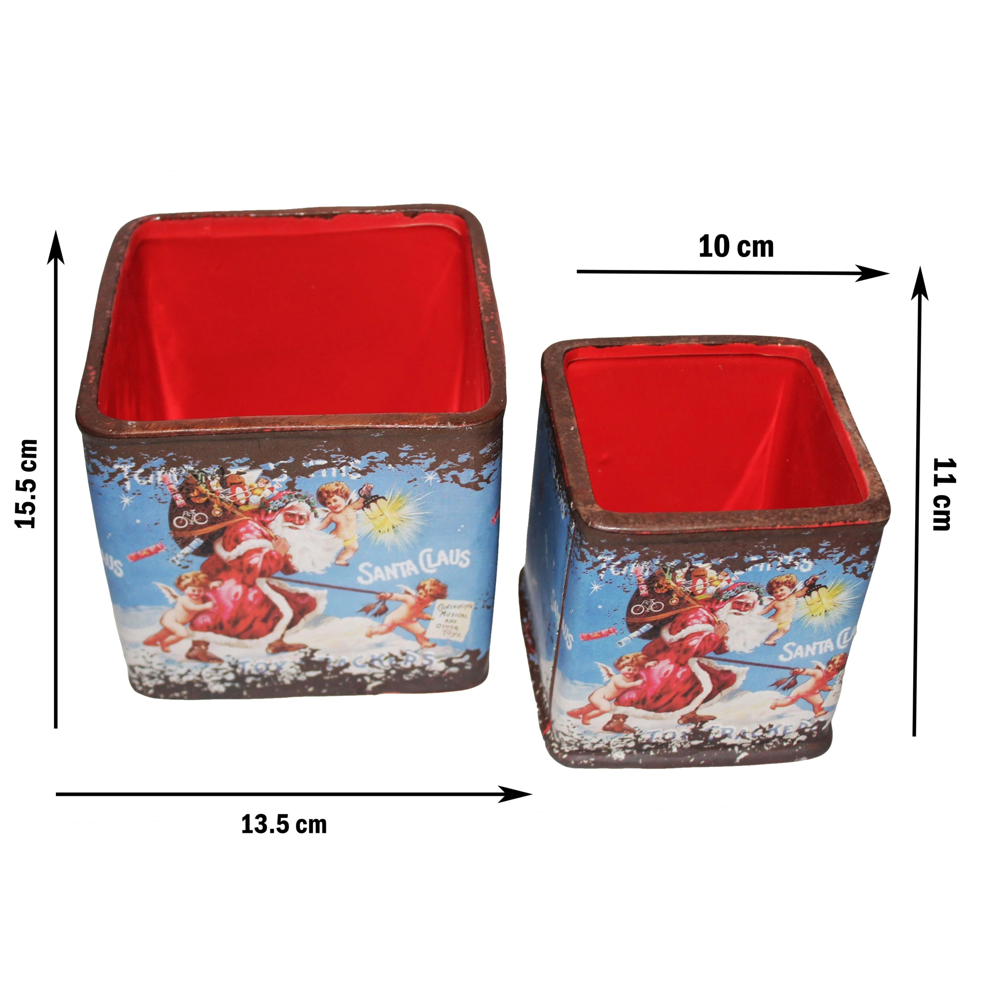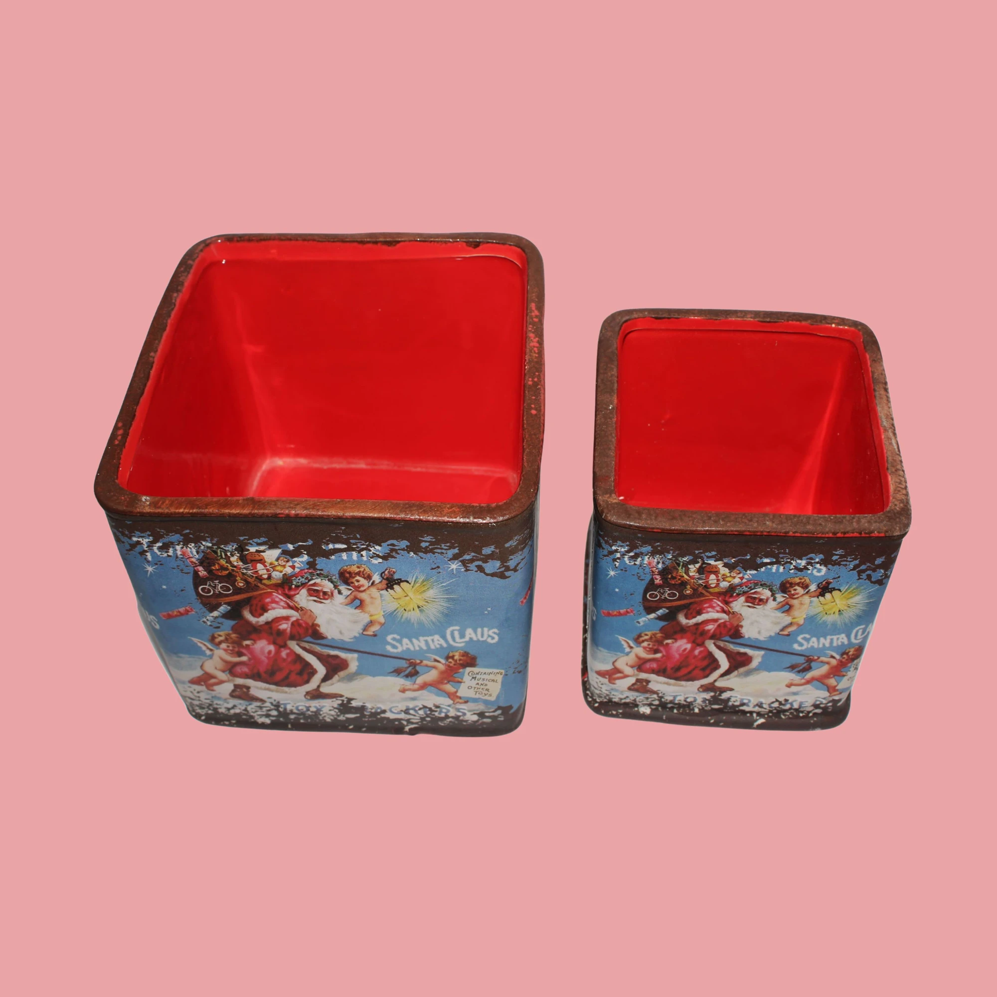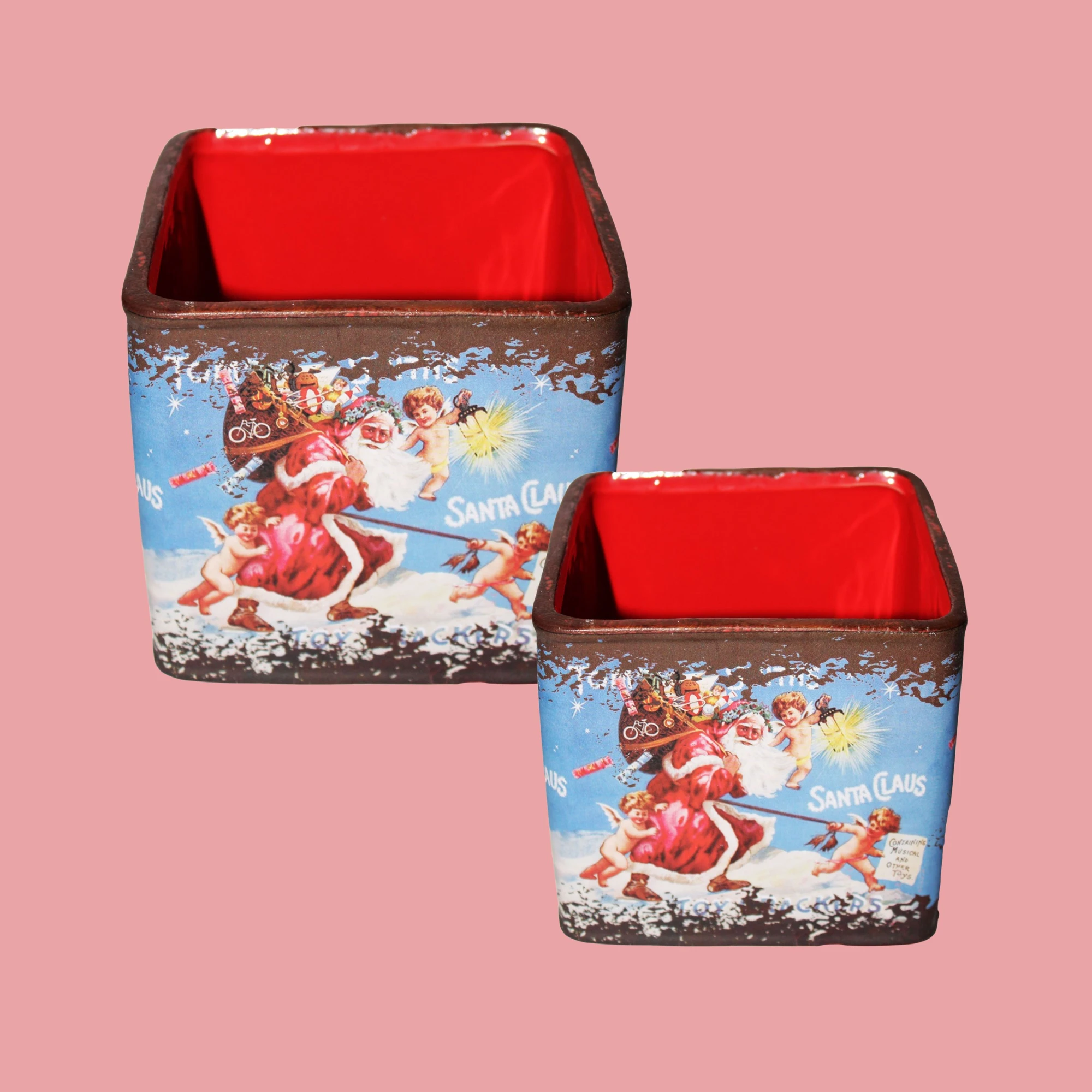 Get into the holiday spirit with the Santa Kitchen Pots Set! This delightful set of two square pots brings a festive touch to your kitchen.