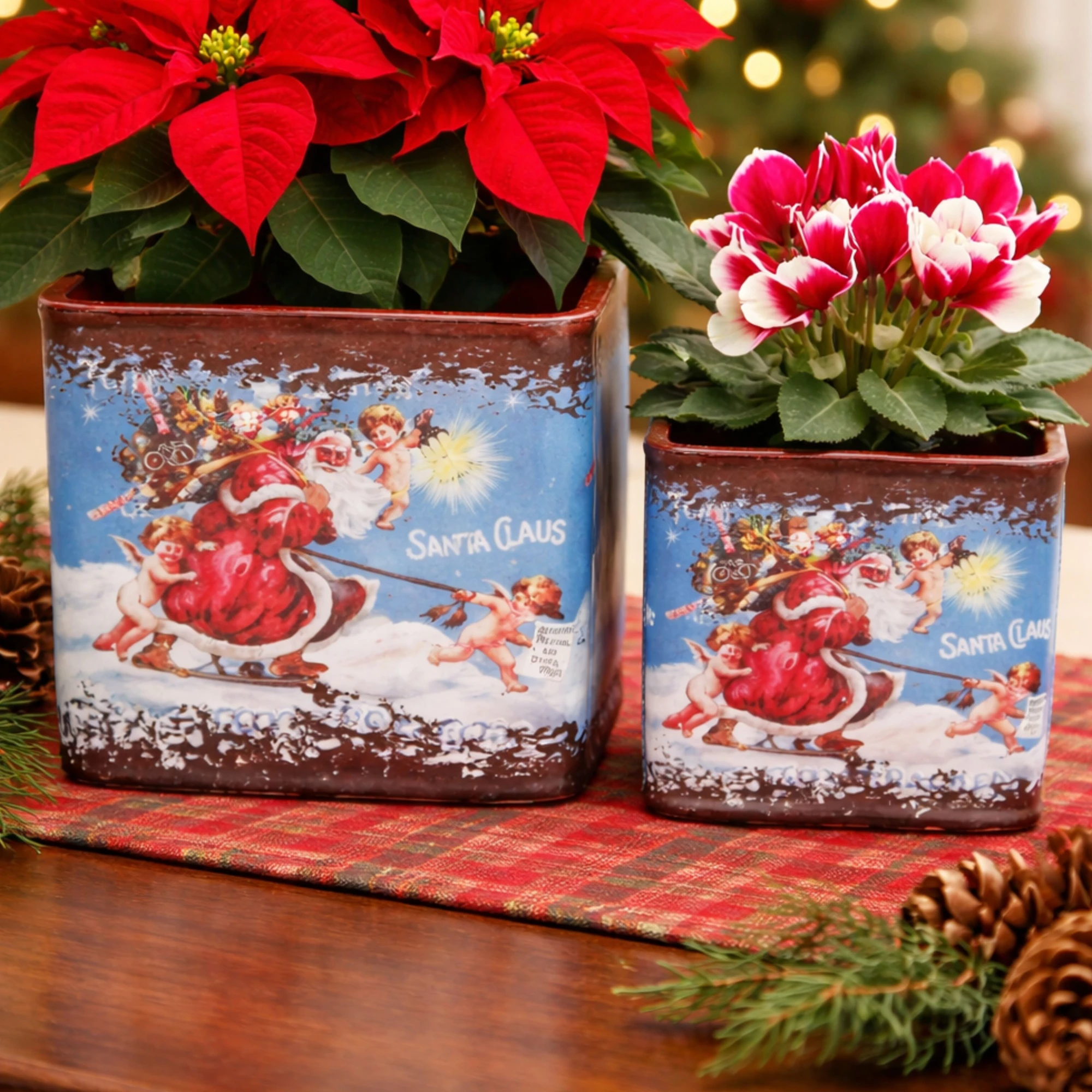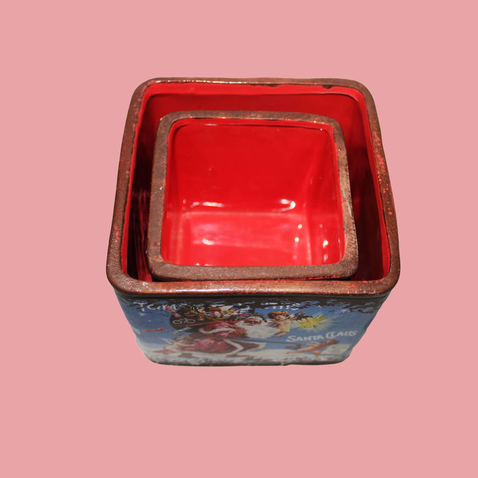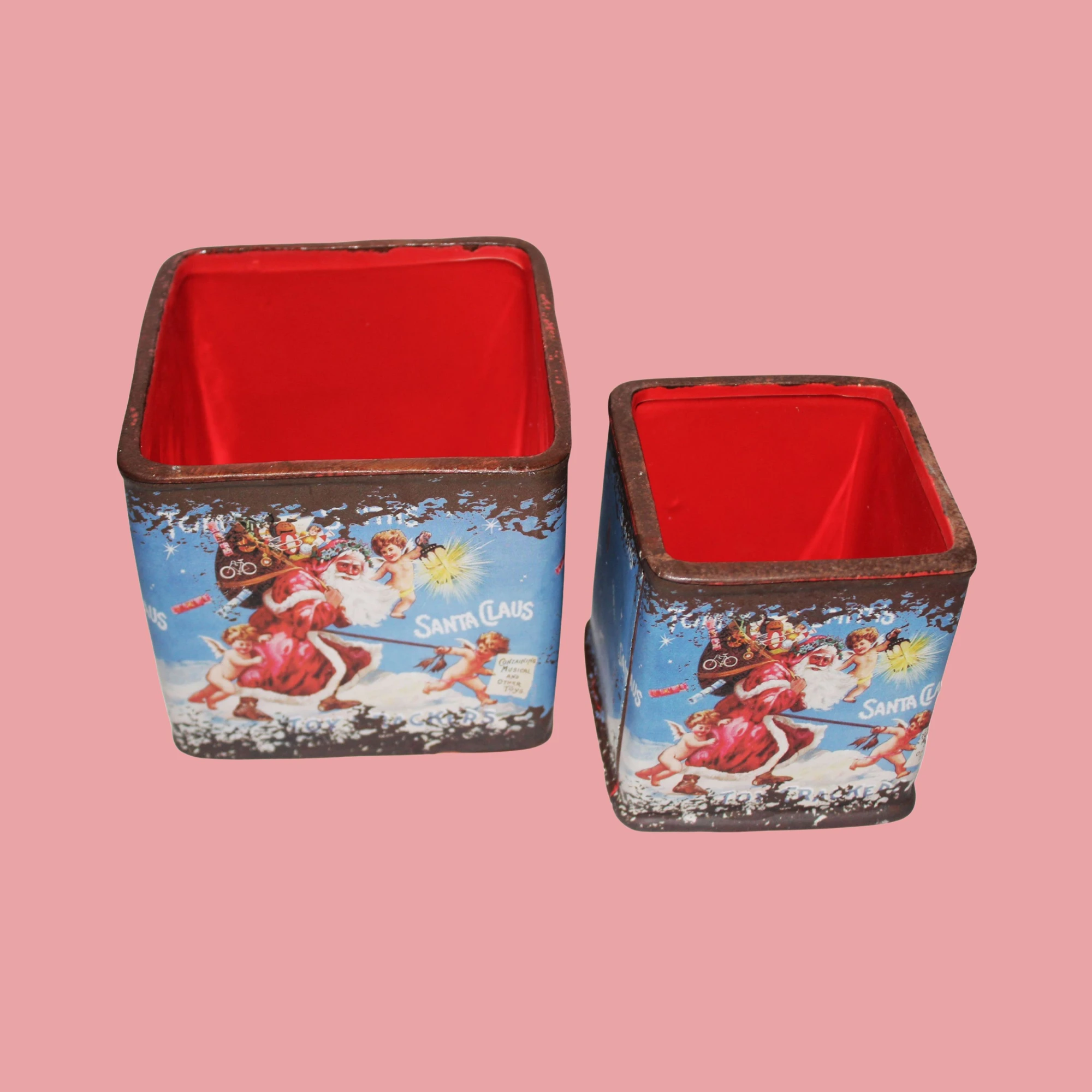 Get into the holiday spirit with the Santa Kitchen Pots Set! This delightful set of two square pots brings a festive touch to your kitchen.