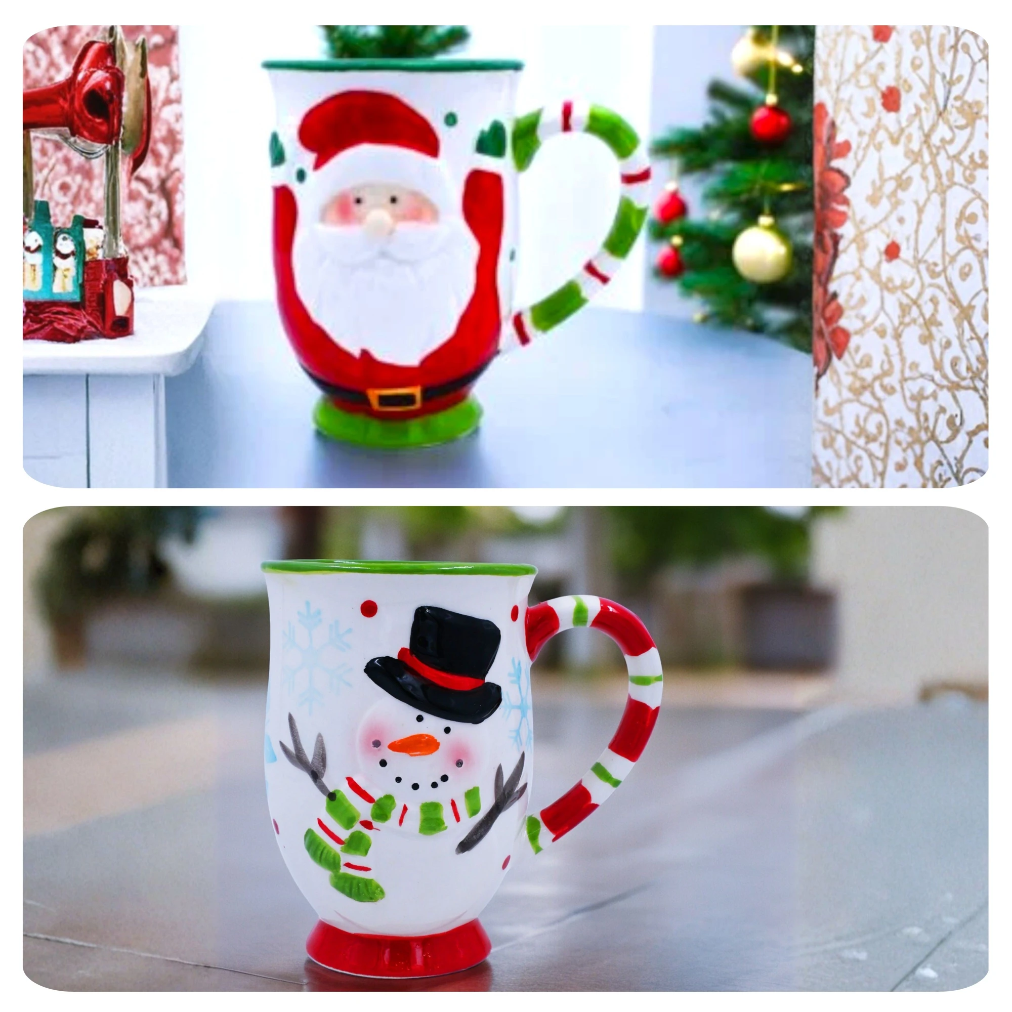 Warm up your holiday season with this delightful duo of Santa and Snowman Hand Raised Mugs. Each mug features a charming, raised design that feels wonderful to the touch and adds festive cheer to your morning coffee or evening cocoa.