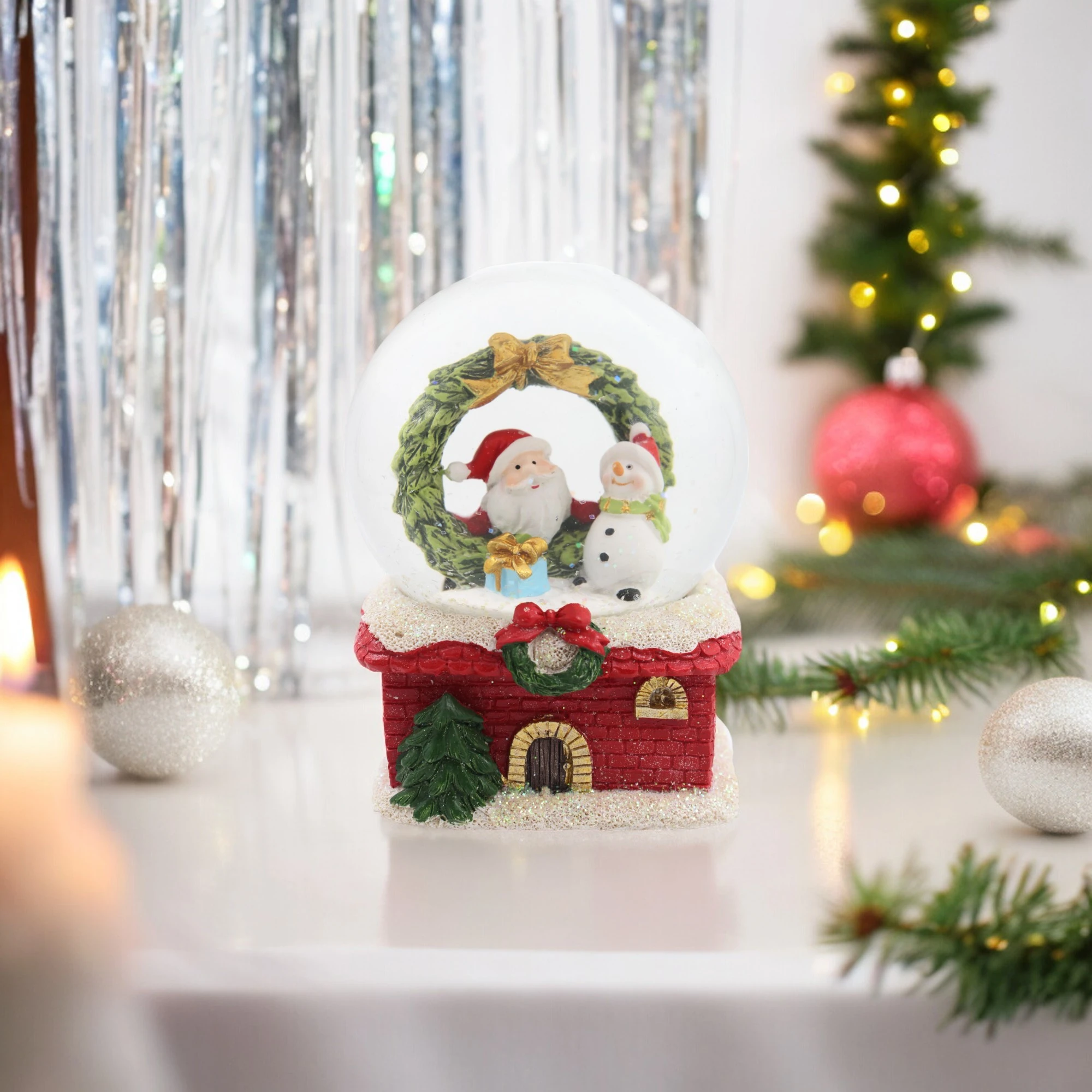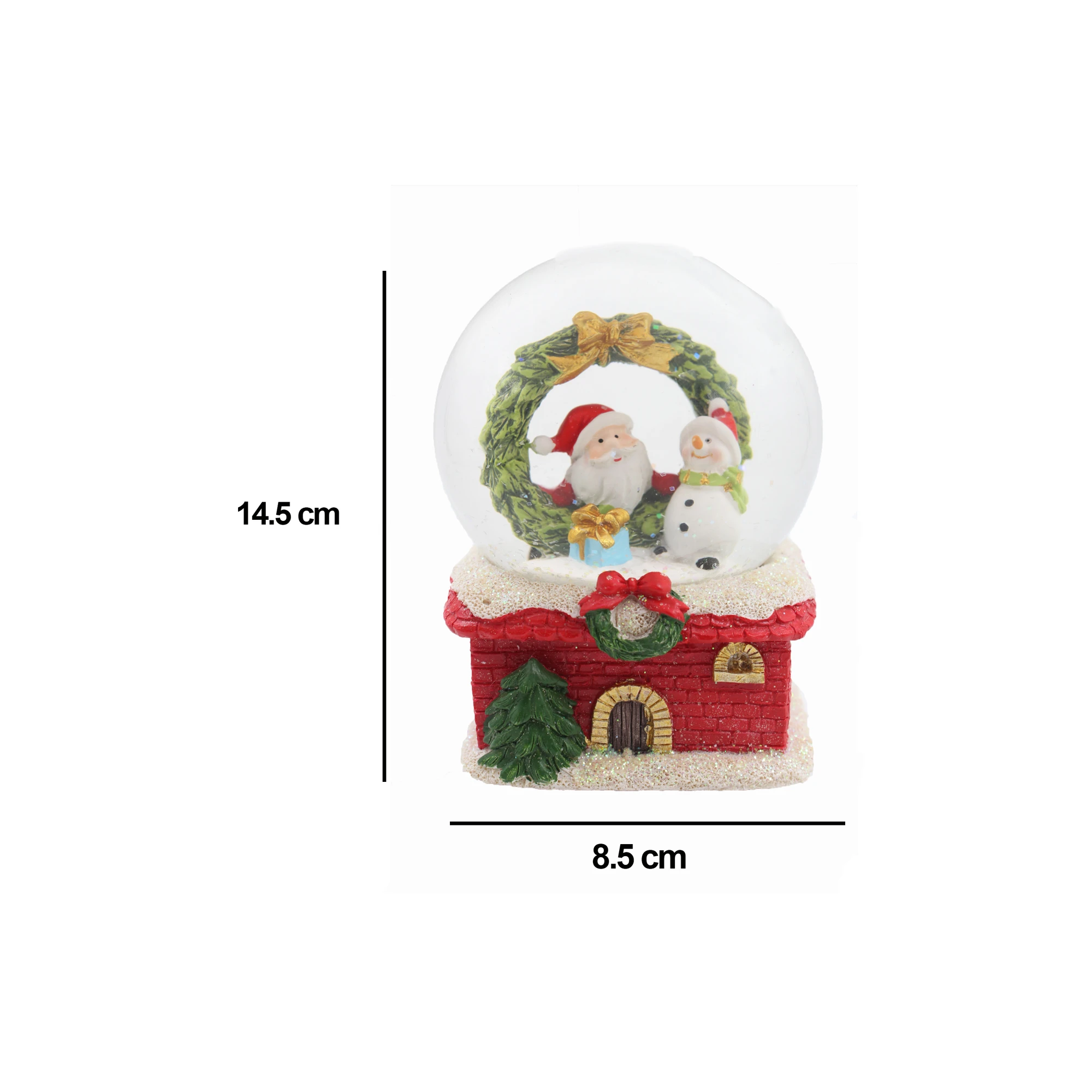 Bring holiday joy to your home with our Santa Snowman in Wreath Snow Globe Big! This charming snow globe features a delightful scene of Santa and a snowman encircled by a festive wreath. Perfect for adding a touch of enchantment to your holiday décor.