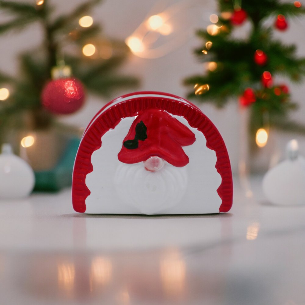 Bring a touch of holiday cheer to your home with our delightful Santa Face Closed Eyes Tissue Holder. This charming accessory doubles as a functional tissue dispenser and a festive decor piece, perfect for the holiday season.