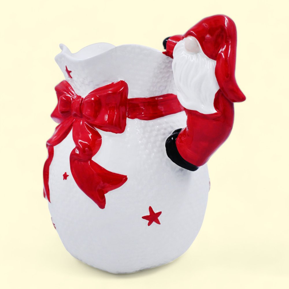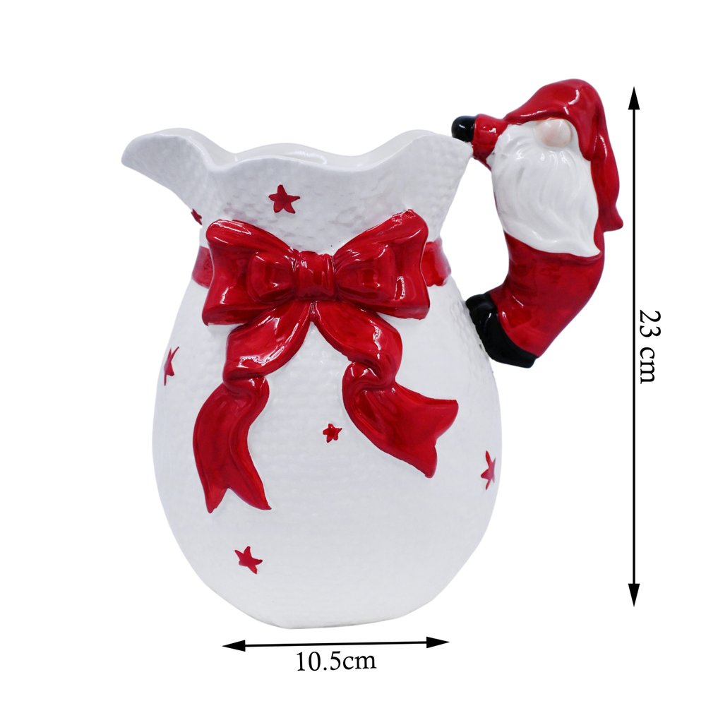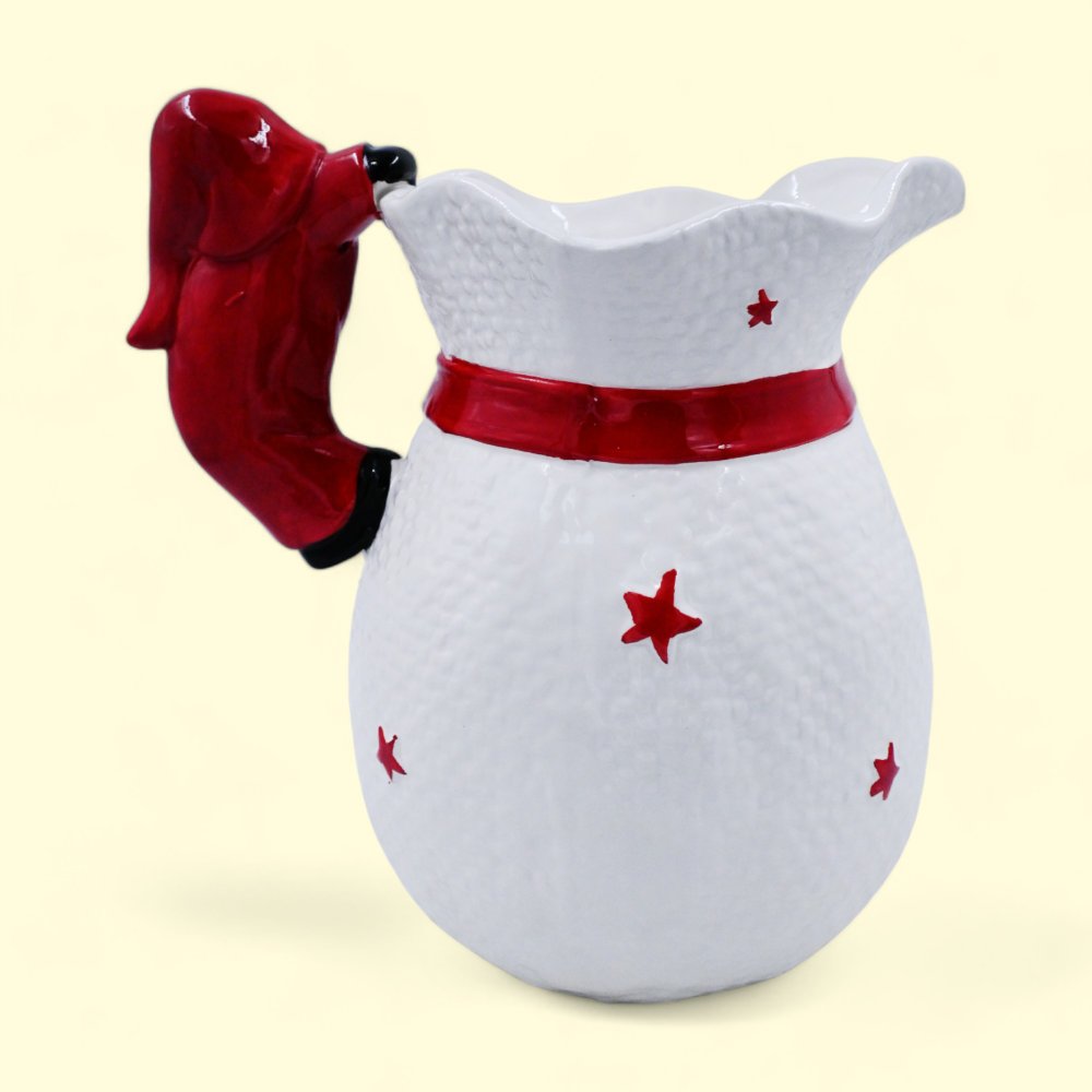 Make your holiday gatherings extra special with a dash of festive cheer using the delightful Santa Handle Jug! This charming jug adds a touch of jolly goodness to any table setting or holiday party. Perfect for serving your favorite holiday drinks, the Santa Handle Jug is crafted with care to bring smiles and warmth to your celebrations.