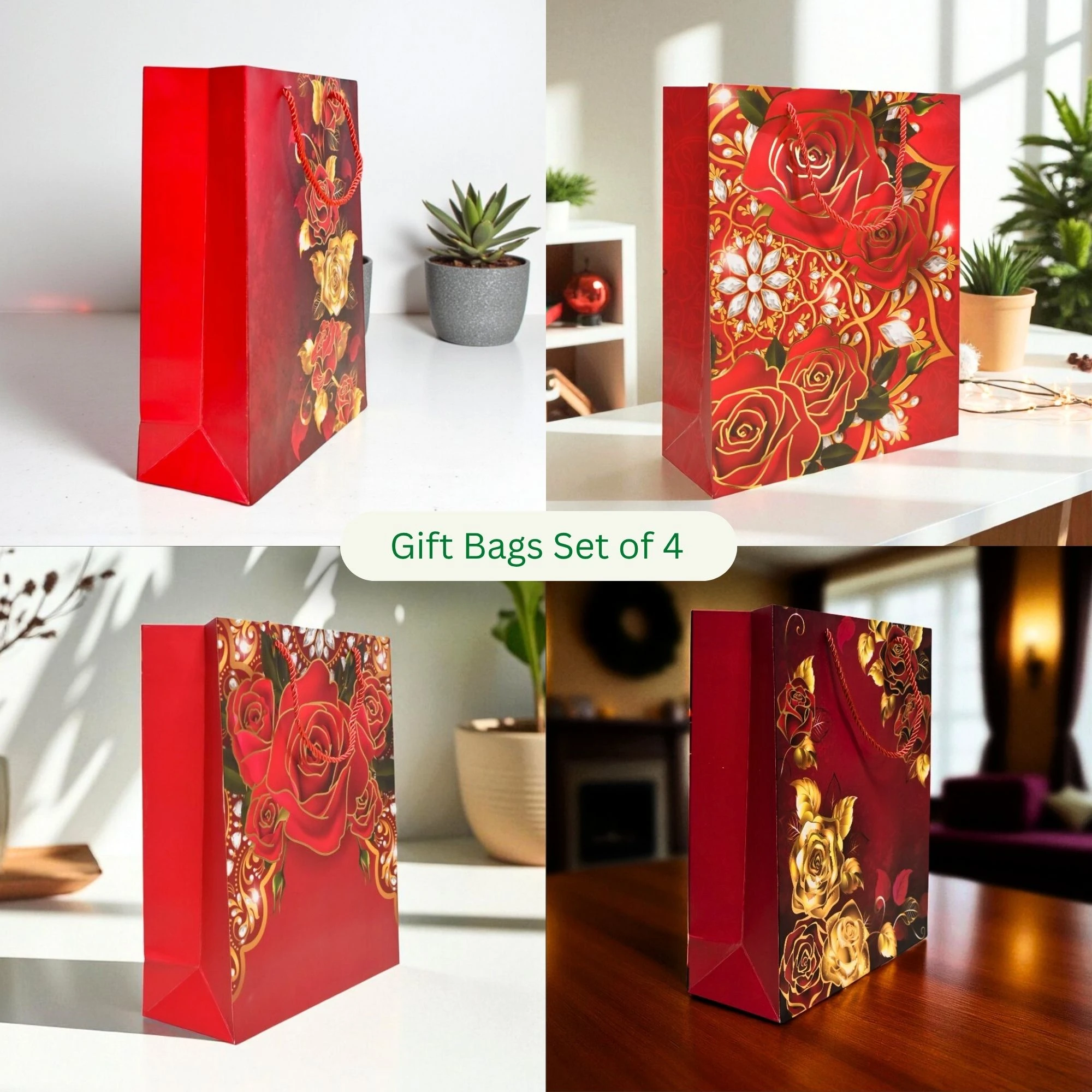 These charming paper bags are the perfect touch of elegance for any occasion. Designed with red roses, each bag in this set of four showcases a unique pattern to suit your style needs.