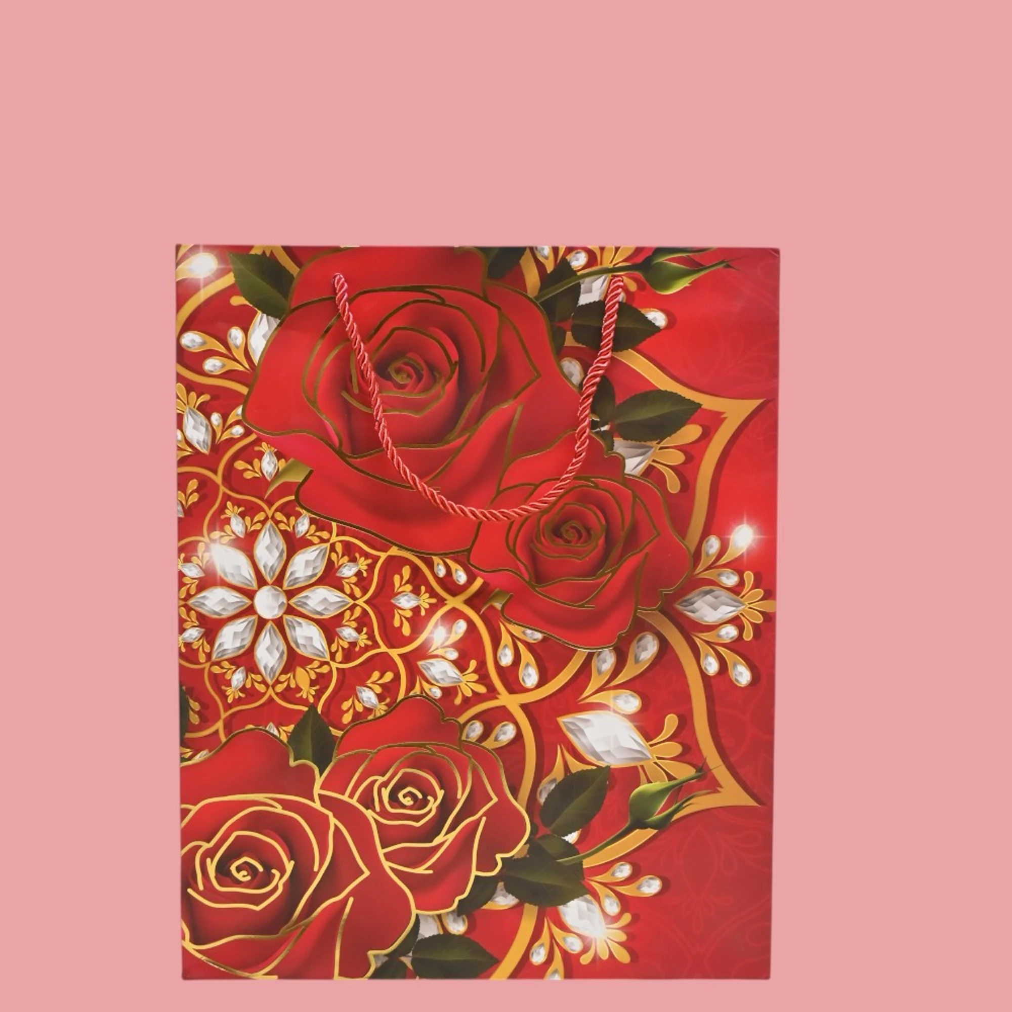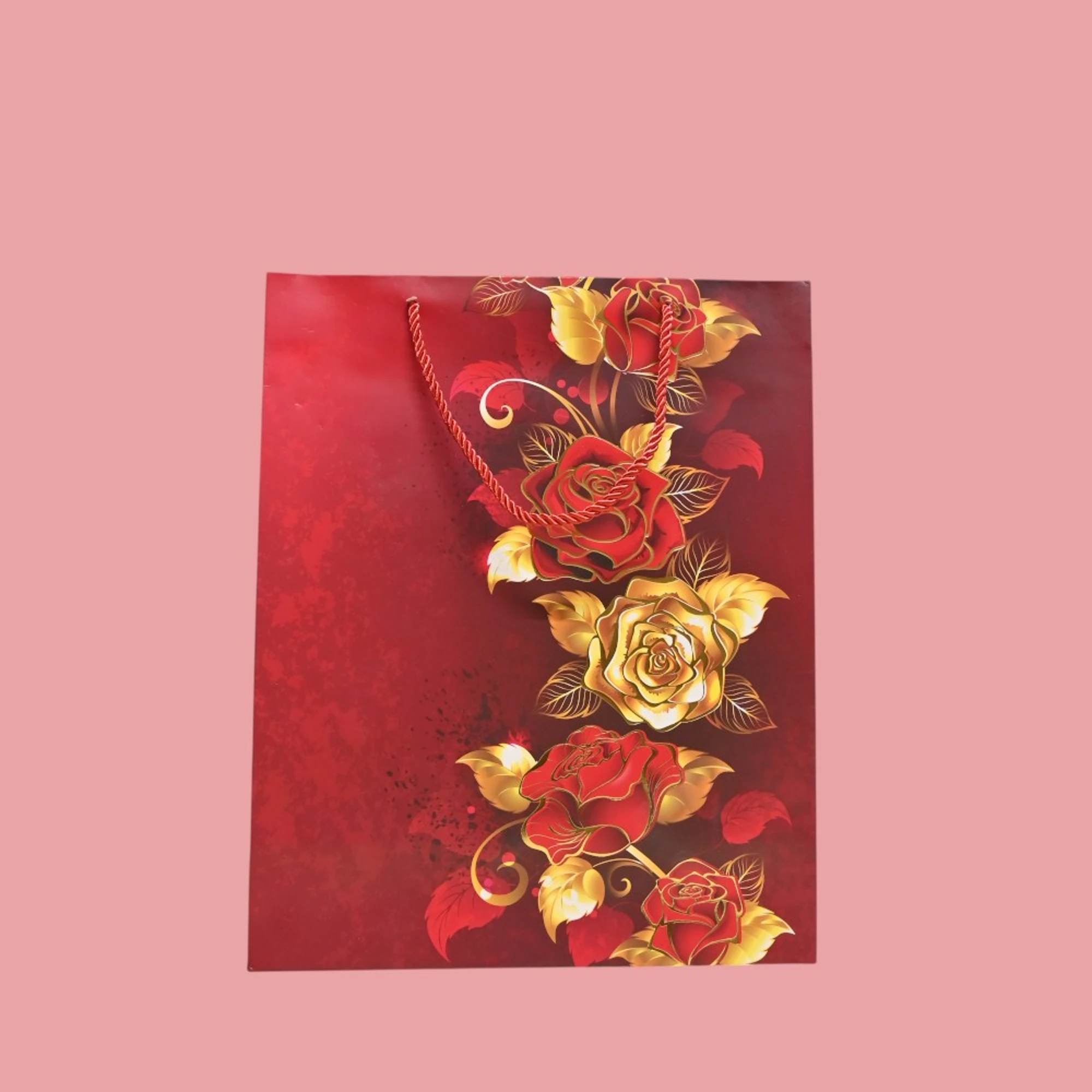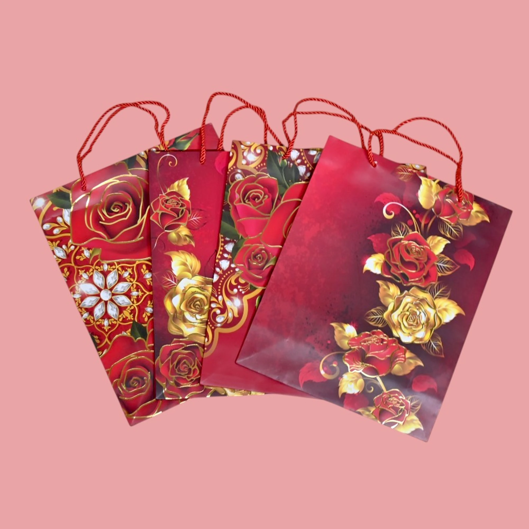 Set of 4 Red Roses Paper Bags – Small, 26x32x10