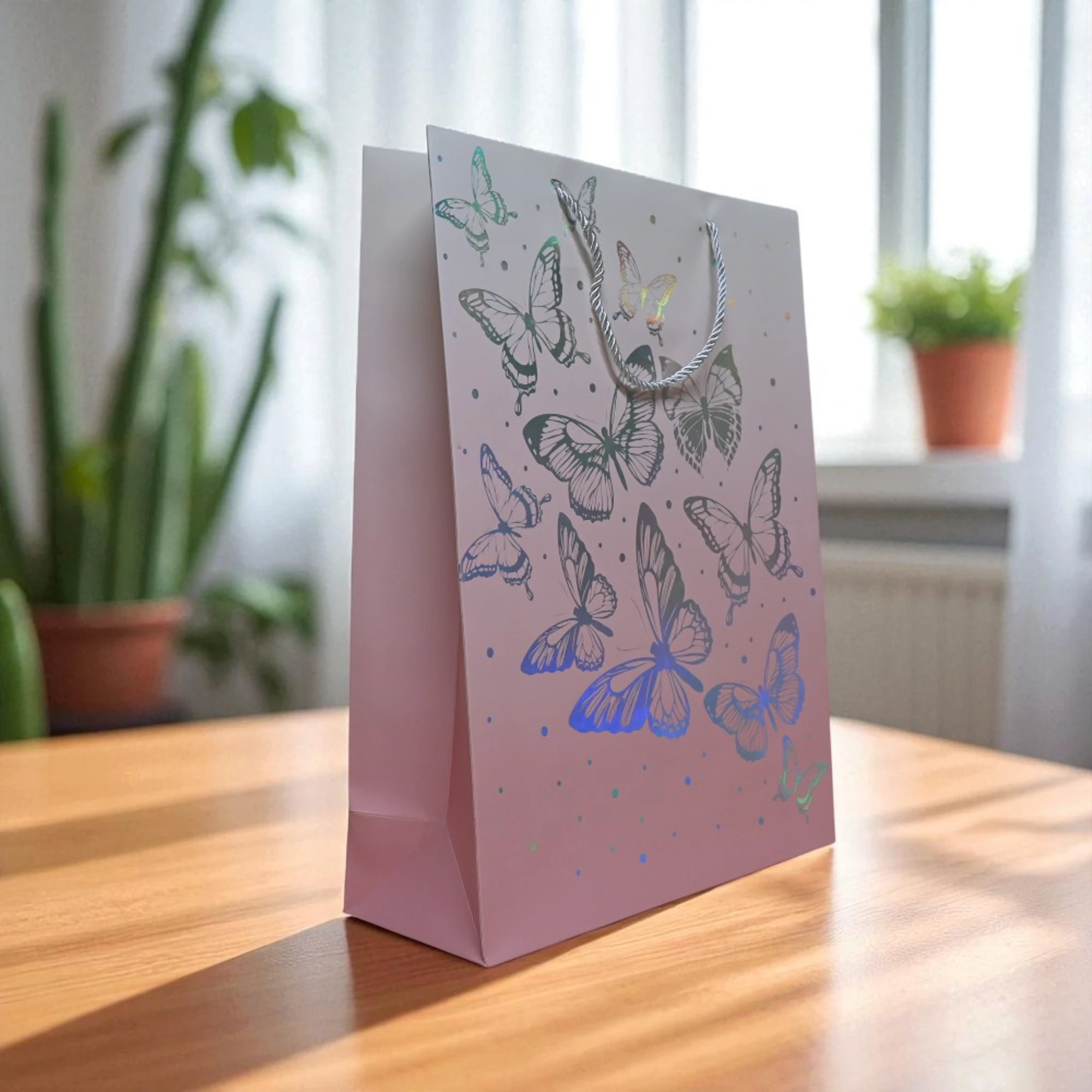 Need a touch of whimsy for your gift-giving or party favors? Our Silver Butterfly Print Pink Paper Bags (Set of 6) are perfect for adding a magical touch to your celebrations.