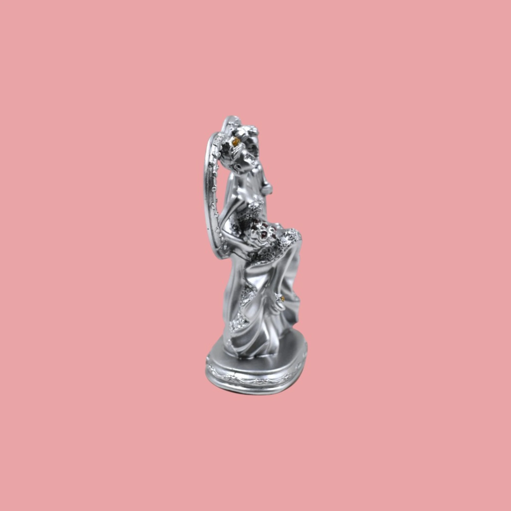 Celebrate the tender bond of love with our Silver Couple with Heart/Moon Medallion Necklace. Crafted with genuine silver, this stunning piece showcases an intricate design of a couple embraced by a heart and moon.