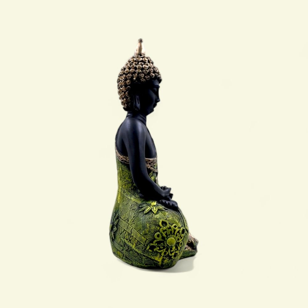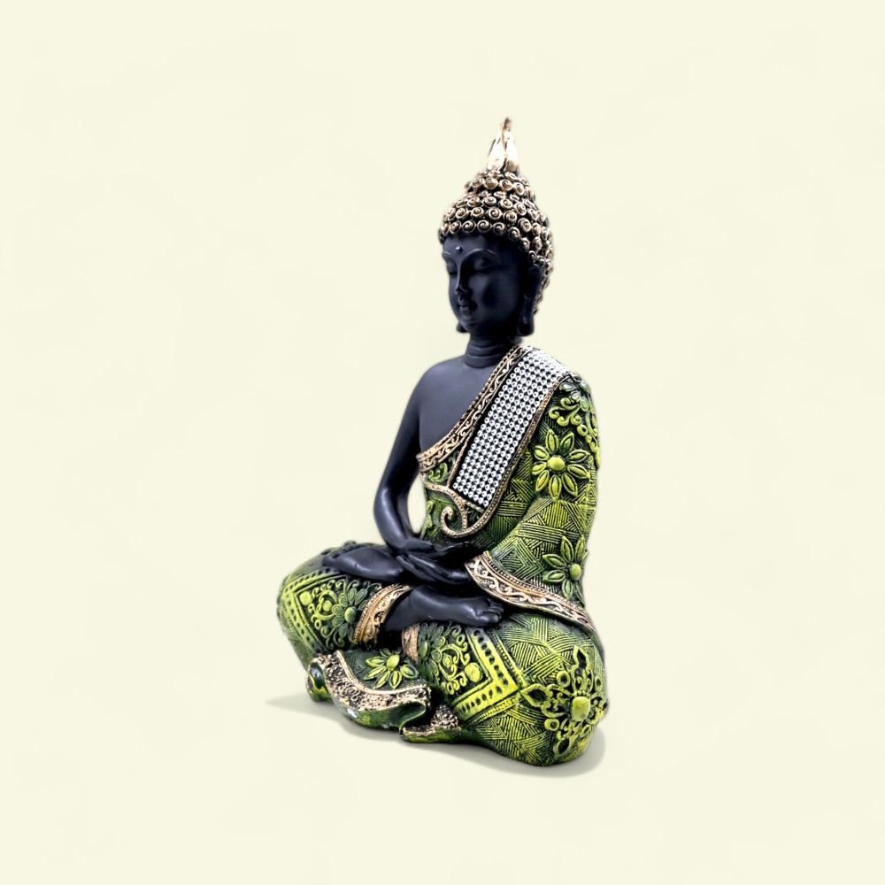 Add a touch of tranquility to your space with this elegant Sitting Buddha Figurine. Standing gracefully in its calming green hue, this exquisite piece is designed to foster a sense of peace and serenity wherever it resides. Crafted with meticulous detail, the figurine embodies traditional elegance while offering a contemporary splash of color to your decor.