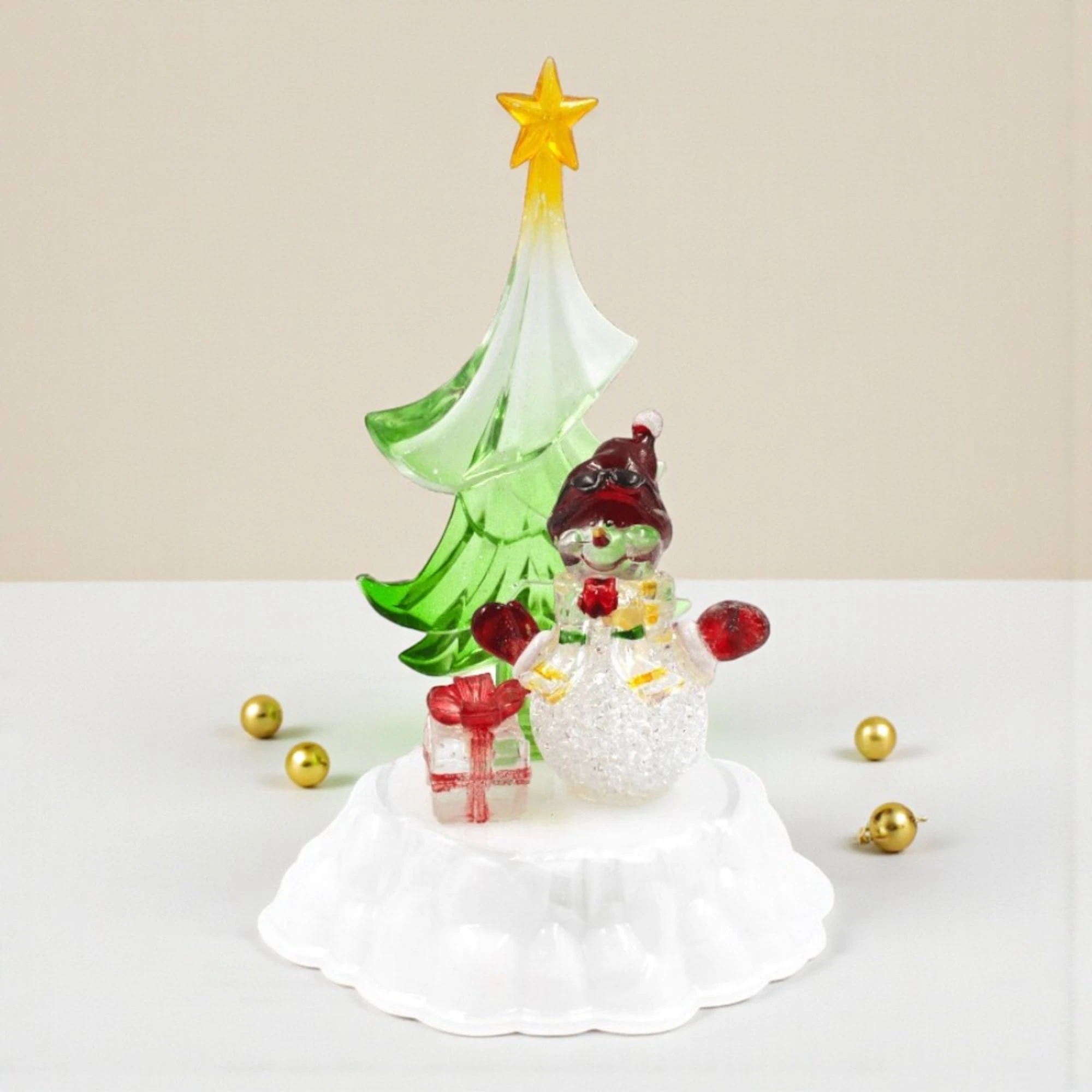 Add a sprinkle of magic to your holiday decor with the SNOWMAN TREE LED TABLE DECOR. This charming piece is perfect for bringing warmth and cheer to any room.