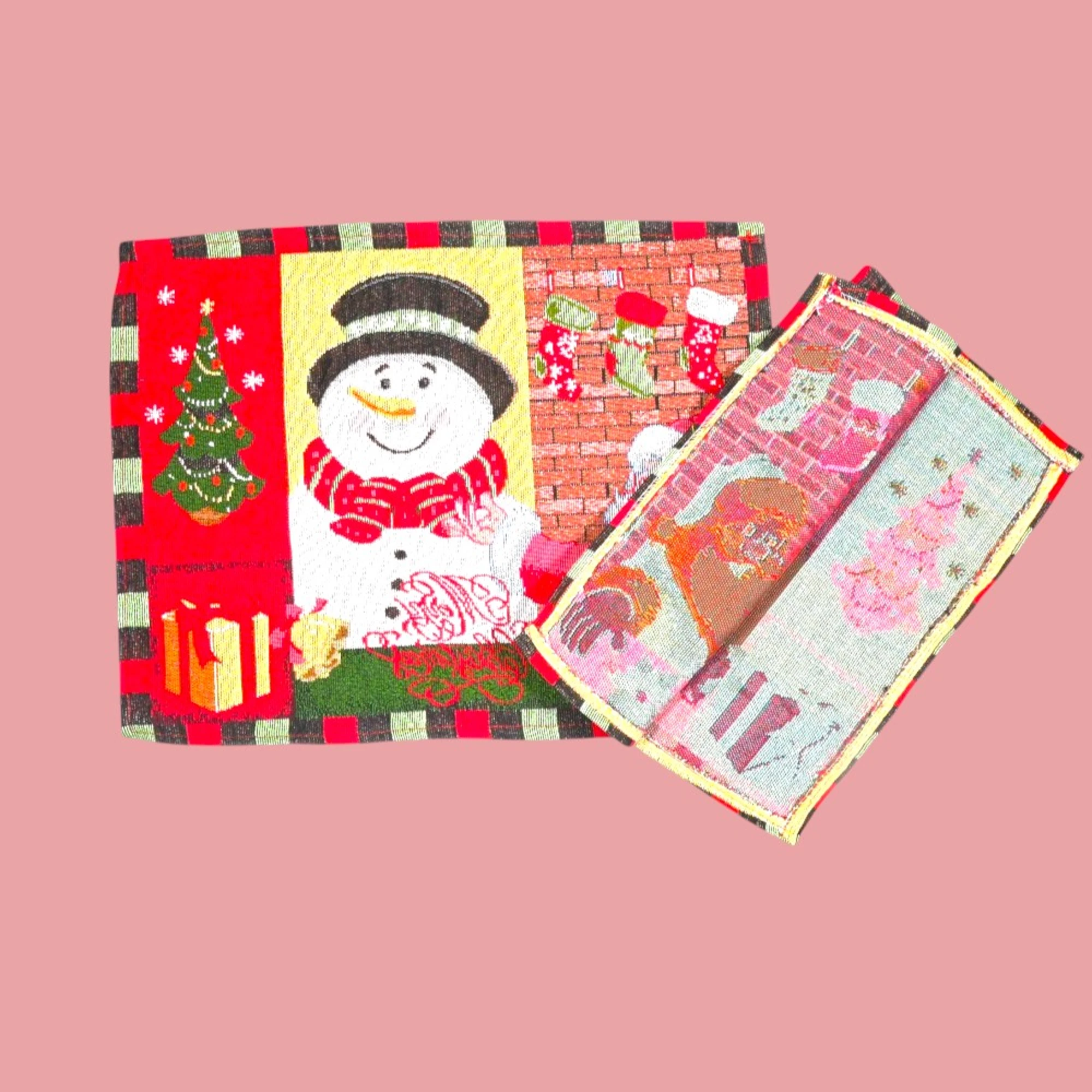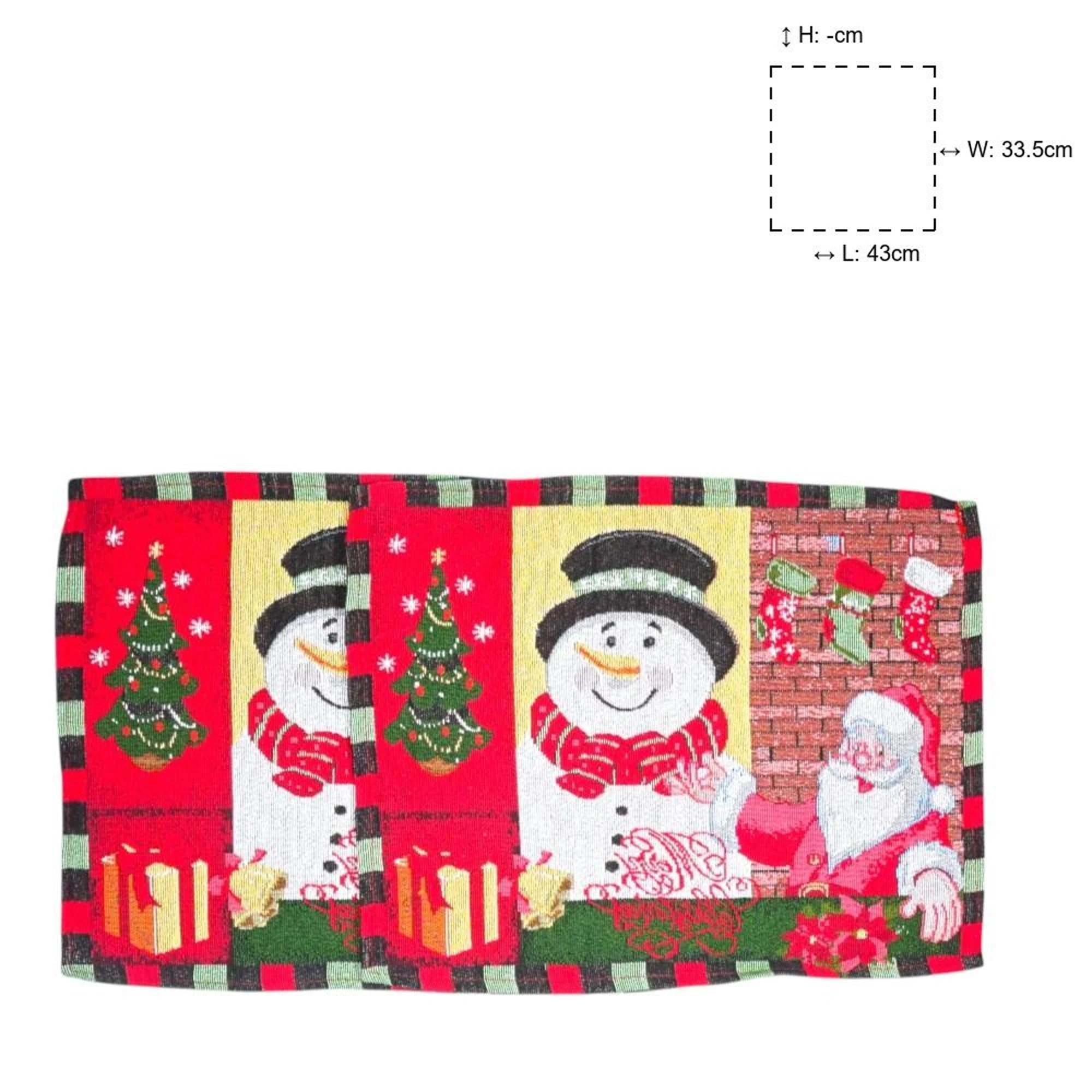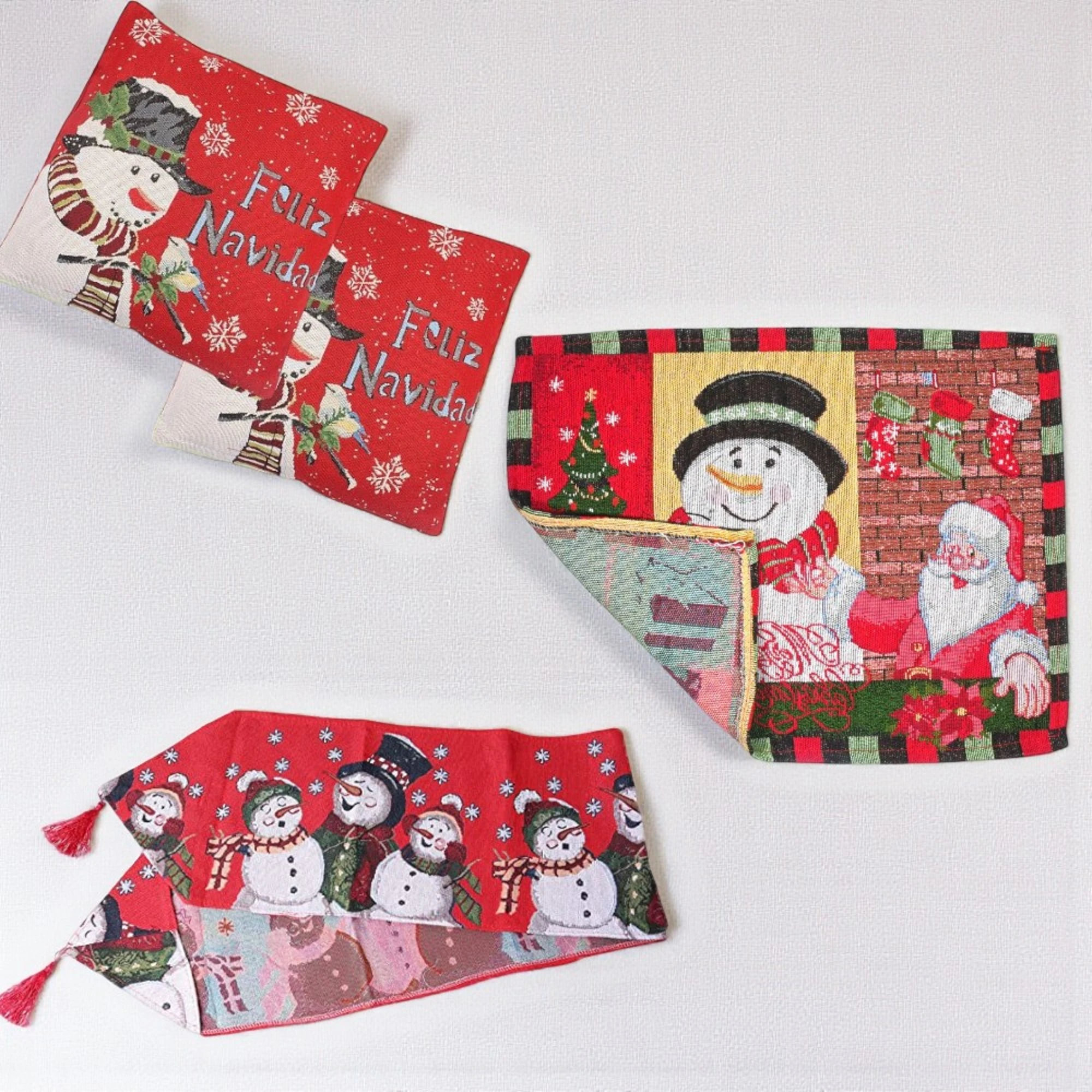 Add a joyous touch to your holiday decor with this delightful Snowman-themed set! This charming collection includes two Feliz Navidad print cushion covers, perfect for festive snuggling on the couch. The Snowman Family Print Tapestry Table Runner, measuring 35 x 135 cm, brings a warm and merry atmosphere to your dining table. And don’t forget the set of two Snowman Santa Table Mats to complete your Christmas dining setup.