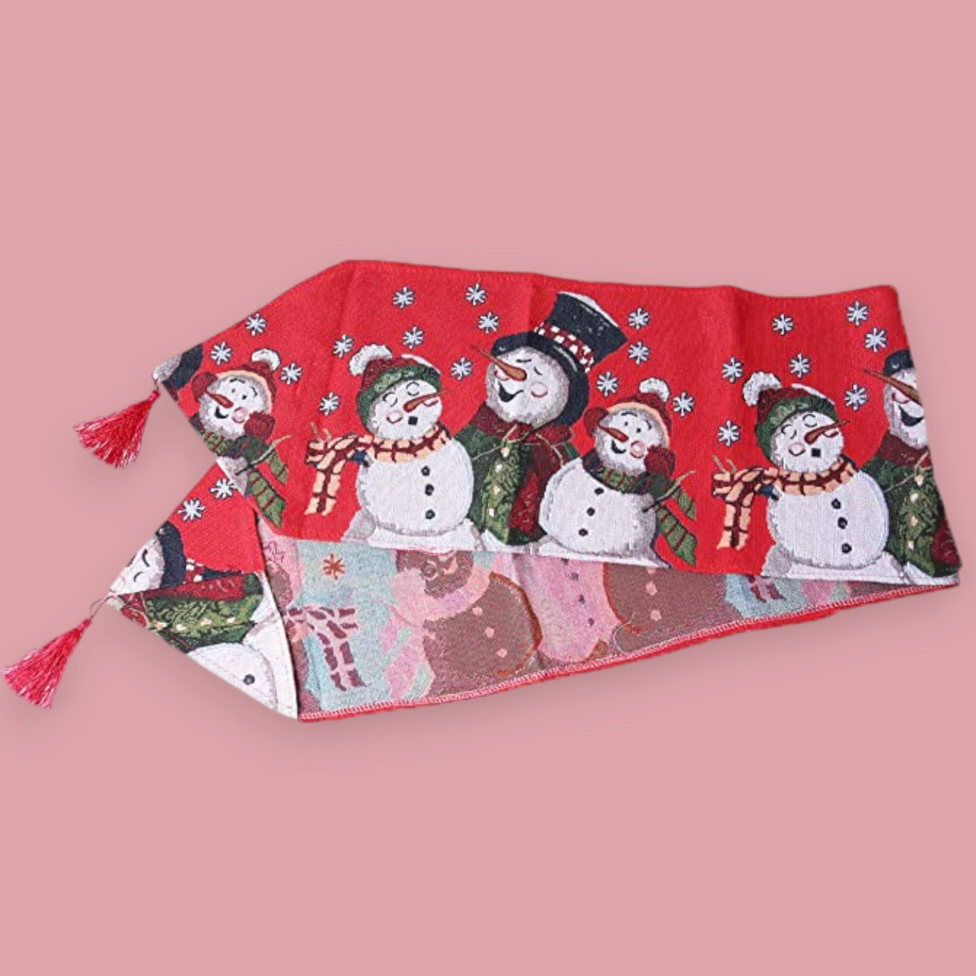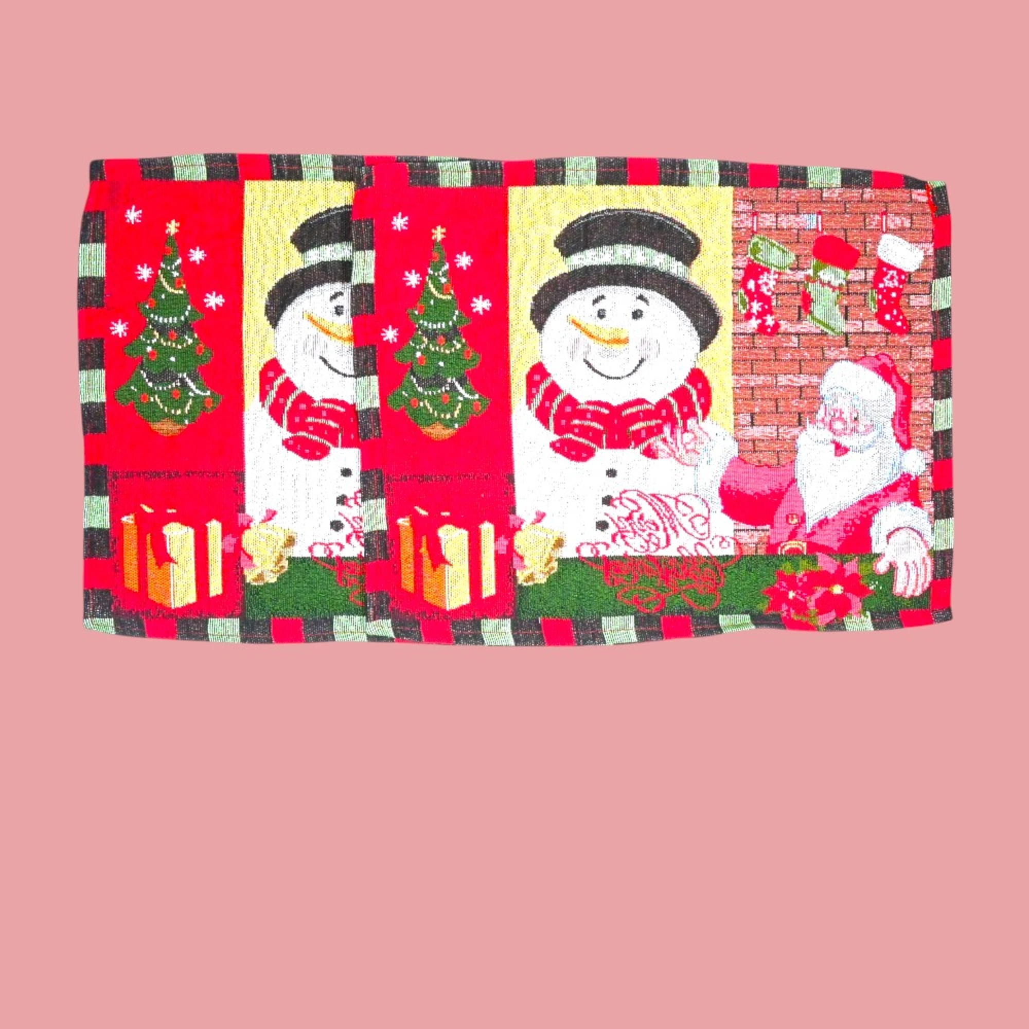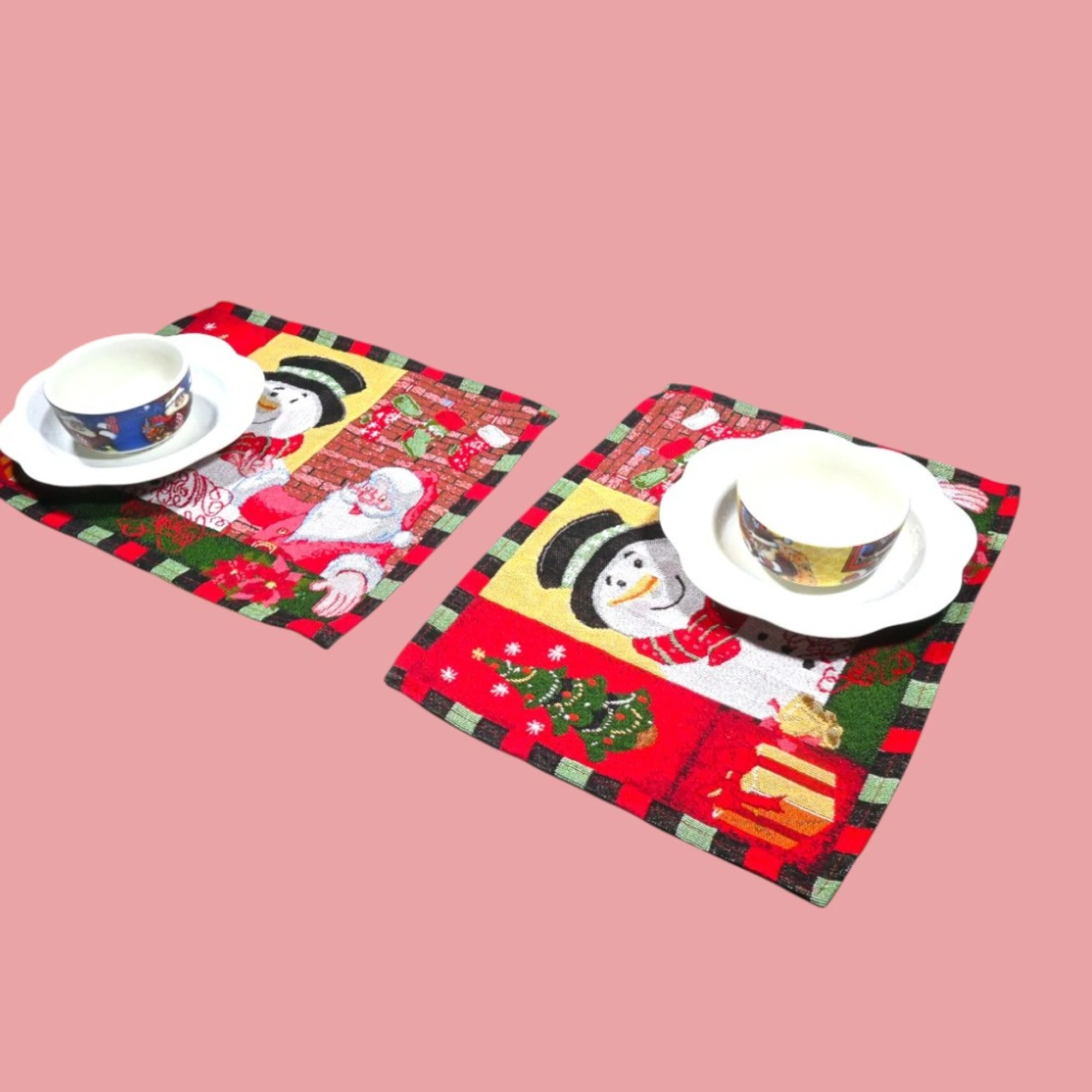Add a joyous touch to your holiday decor with this delightful Snowman-themed set! This charming collection includes two Feliz Navidad print cushion covers, perfect for festive snuggling on the couch. The Snowman Family Print Tapestry Table Runner, measuring 35 x 135 cm, brings a warm and merry atmosphere to your dining table. And don’t forget the set of two Snowman Santa Table Mats to complete your Christmas dining setup.