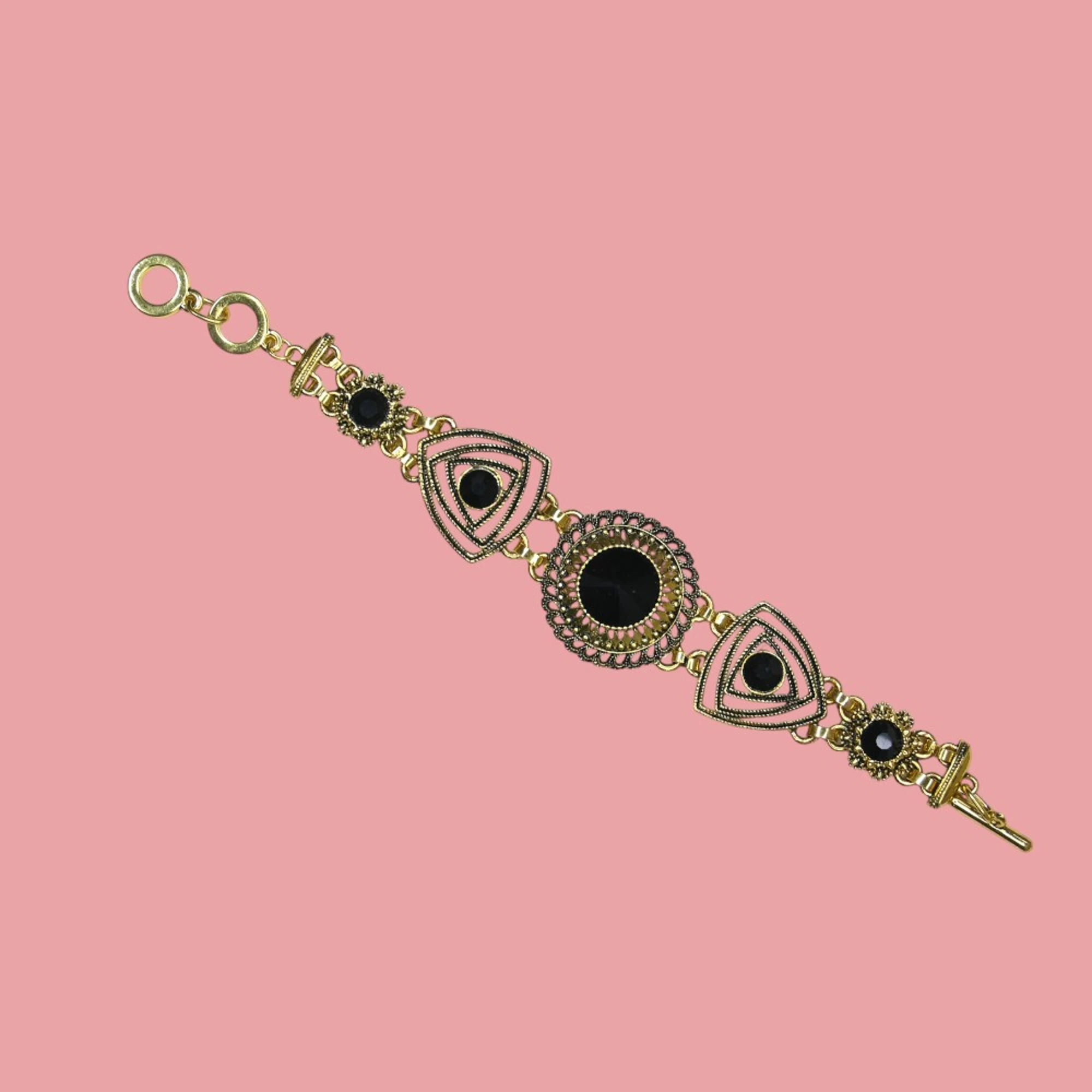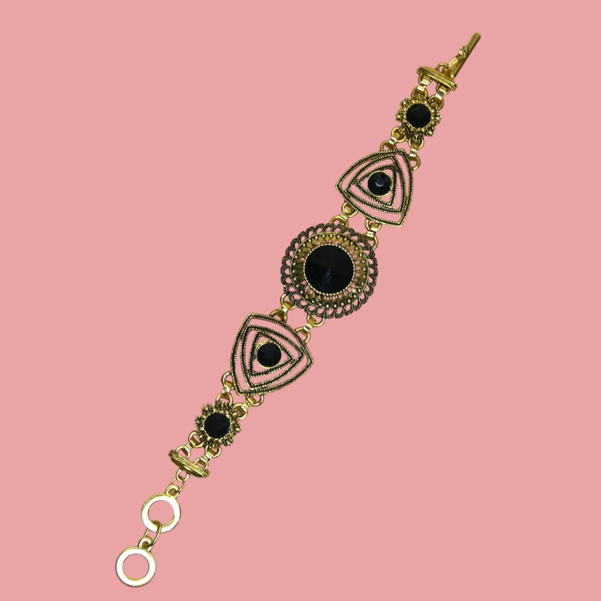 Step out in style with these stunning Ethnic Jhumkas that make a perfect addition to any outfit. Their traditional design is crafted for those who love a touch of elegance. The dangling structure makes them a perfect choice for festive occasions. Pair them up with the beautifully designed stone bracelets that add a subtle sparkle to your wrist. The stones are carefully encrusted to give you that extra shine.