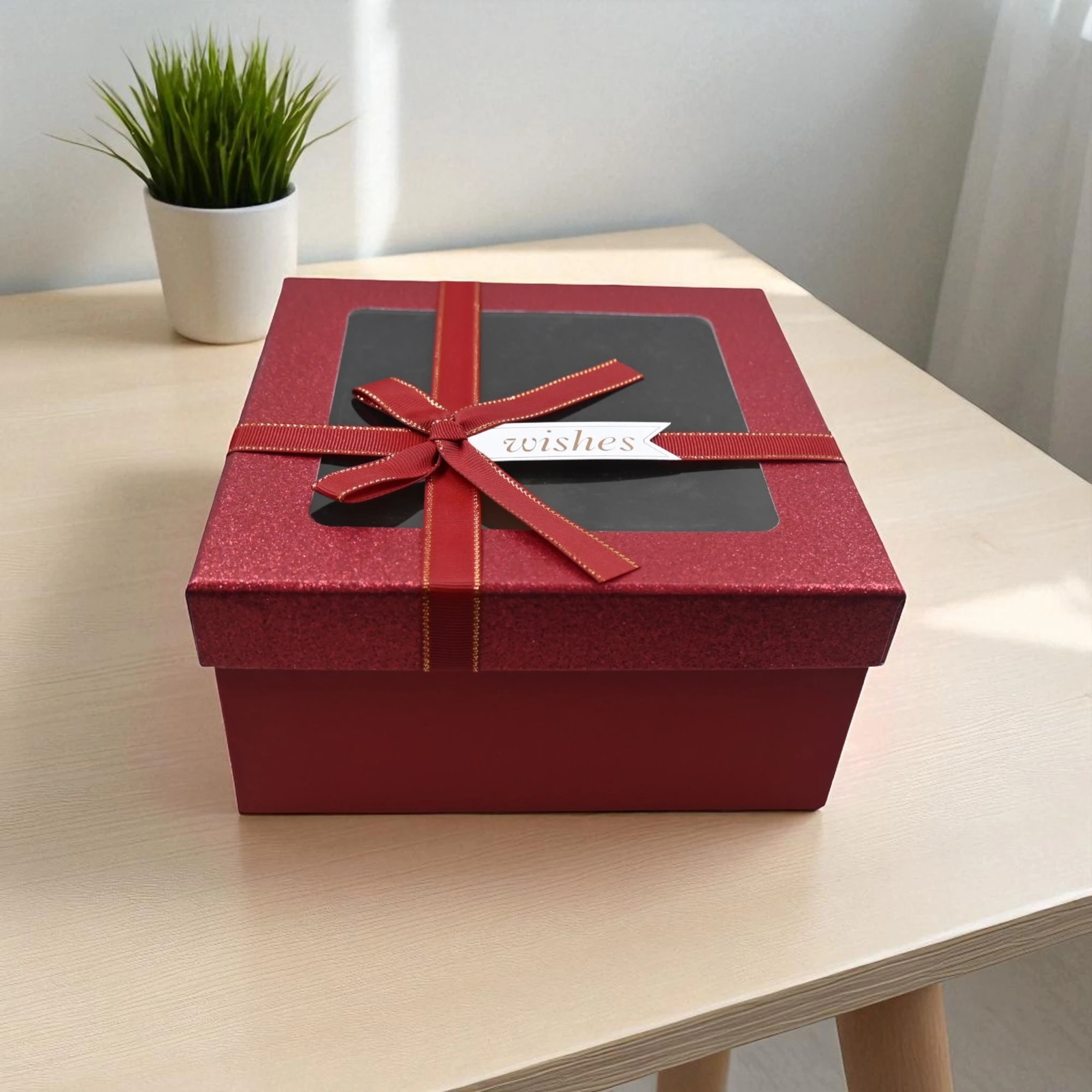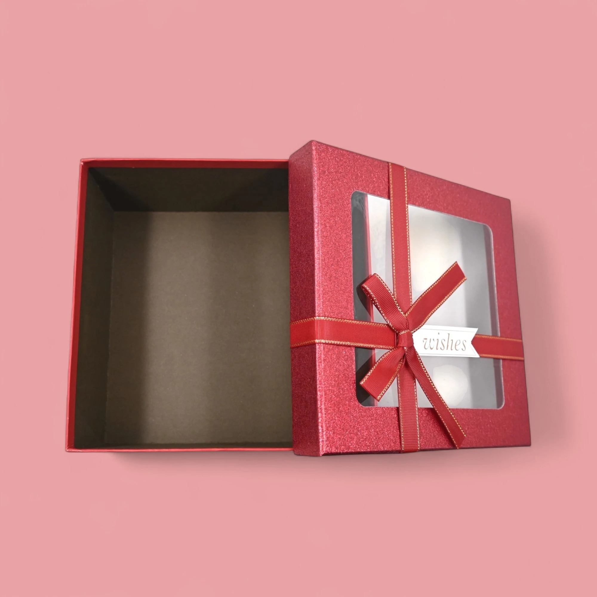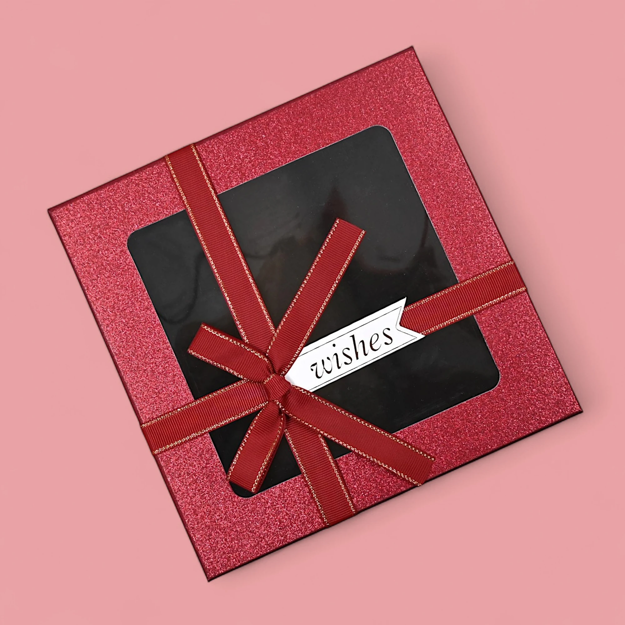 Add a touch of glitz and glamour to your gifts with the Glitter Cover Gift Box. Perfect for showcasing your thoughtful presents, this gift box features a clear window, allowing recipients to sneak a peek at what’s inside while maintaining that element of surprise.