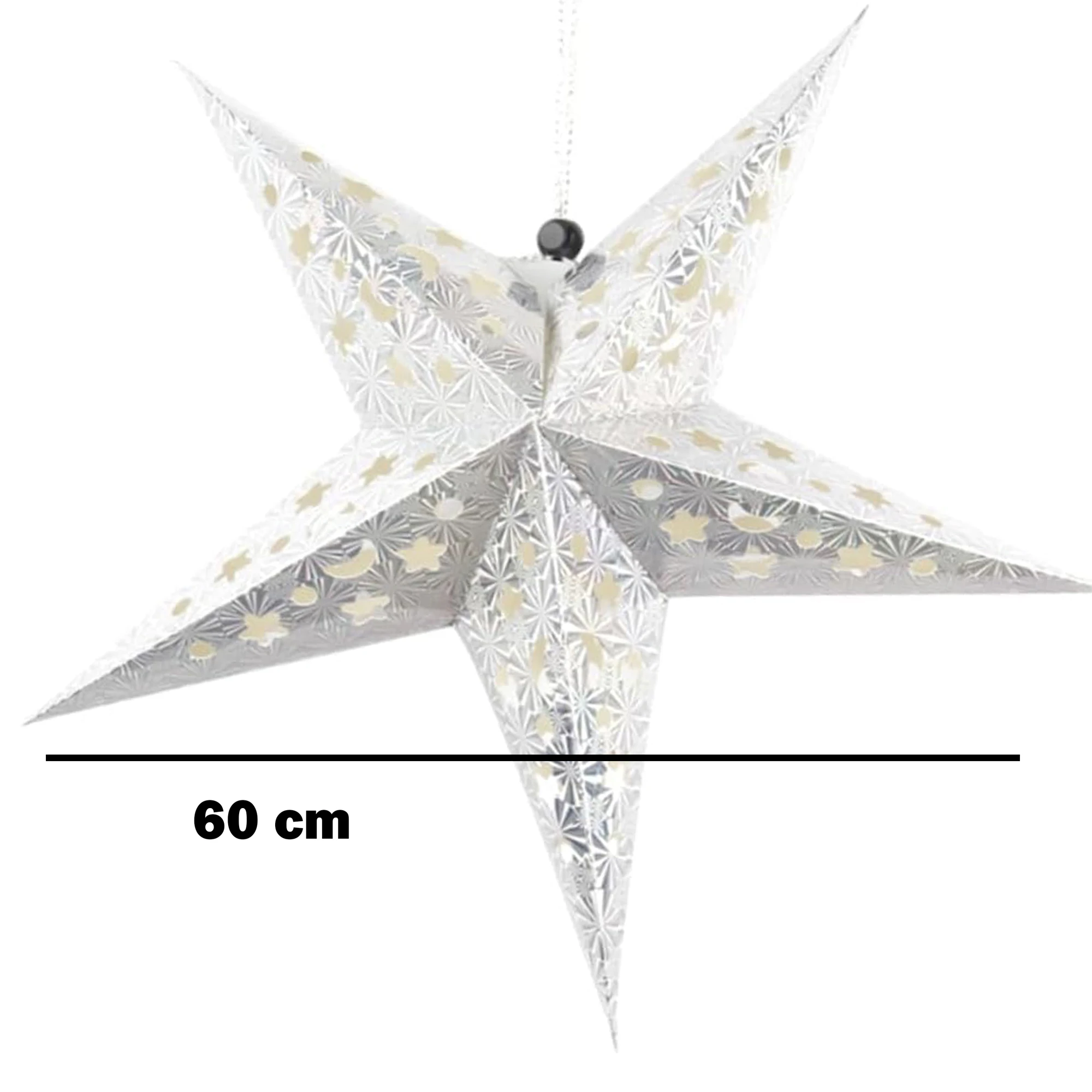 Light up any space with the dazzling Paper Star Star Moon Cutout! At a generous 60 cm, this silver wonder delivers an enchanting blend of stars and moons, bringing a celestial glow to your room. Whether you’re hosting a festive celebration or creating a cozy nook, this decoration is your go-to for an instant shimmer.