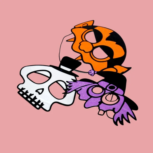 For those looking to dress up for the occasion, we’ve got three perfectly spooky eye masks: the Witch Eye Mask, Skull Eye Mask, and Ghost Eye Mask. These masks are ideal for anyone wanting a last-minute costume or simply to add a bit of mystery and magic to their Halloween attire. Each mask is crafted to be comfortable yet frightening, making sure you can party the night away in style.