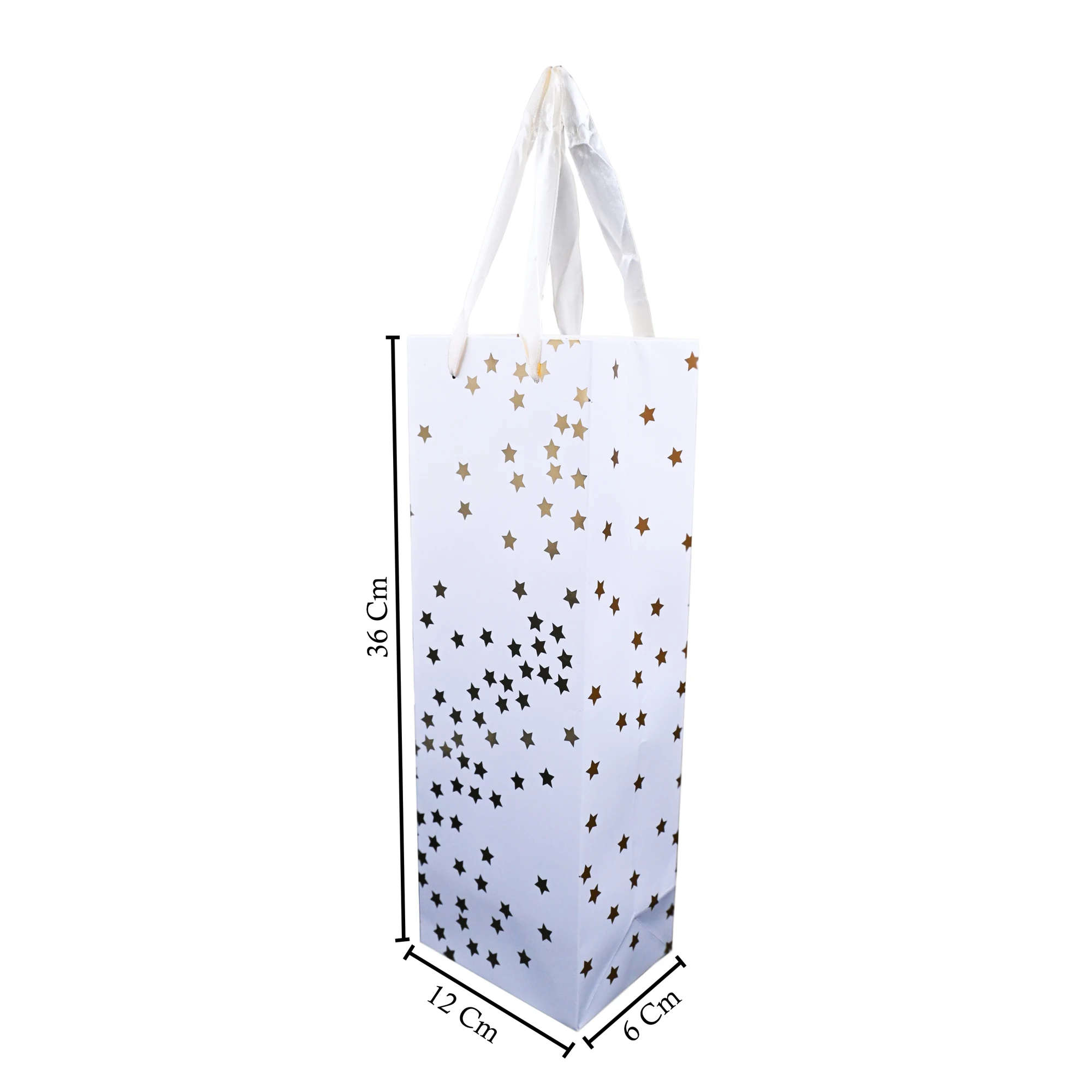 Make any occasion special with the STAR White Wine Bottle Paper Bag, designed to add a touch of elegance to your wine gifting. Measuring 12x35x10 cm, this beautifully crafted bag perfectly accommodates a standard wine bottle.
