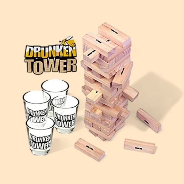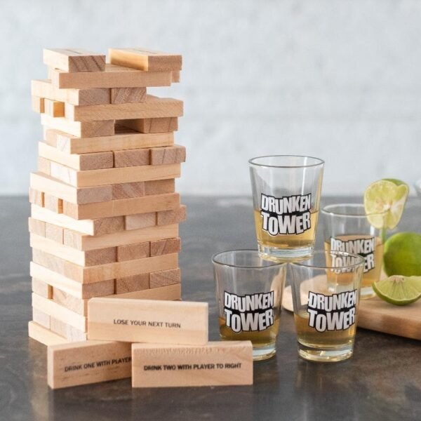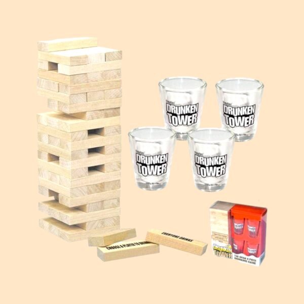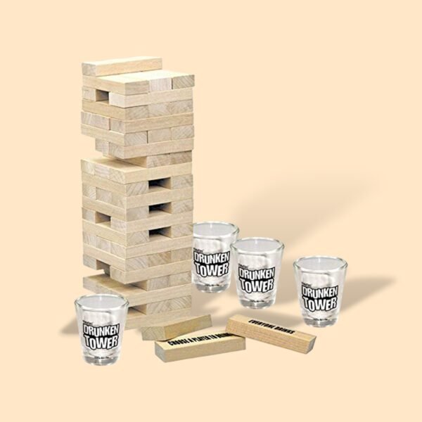 Elevate your evening?s entertainment with this ingeniously crafted wooden block game, designed to bring laughter and suspense to any gathering. Each meticulously sanded block is a testament to fine craftsmanship, promising not only a steady hand but also an unforgettable social experience. As the tower grows taller, the stakes get higher?each piece you pull could either pave your way to victory or send you spiraling into hilarious defeat. Accompanied by four crystal-clear shot glasses etched with playful prompts, this game promises to be the centerpiece of your next party. Whether it?s a casual night in or a boisterous celebration, prepare for an uproarious time where every move is more than just a game?it?s a memory in the making.