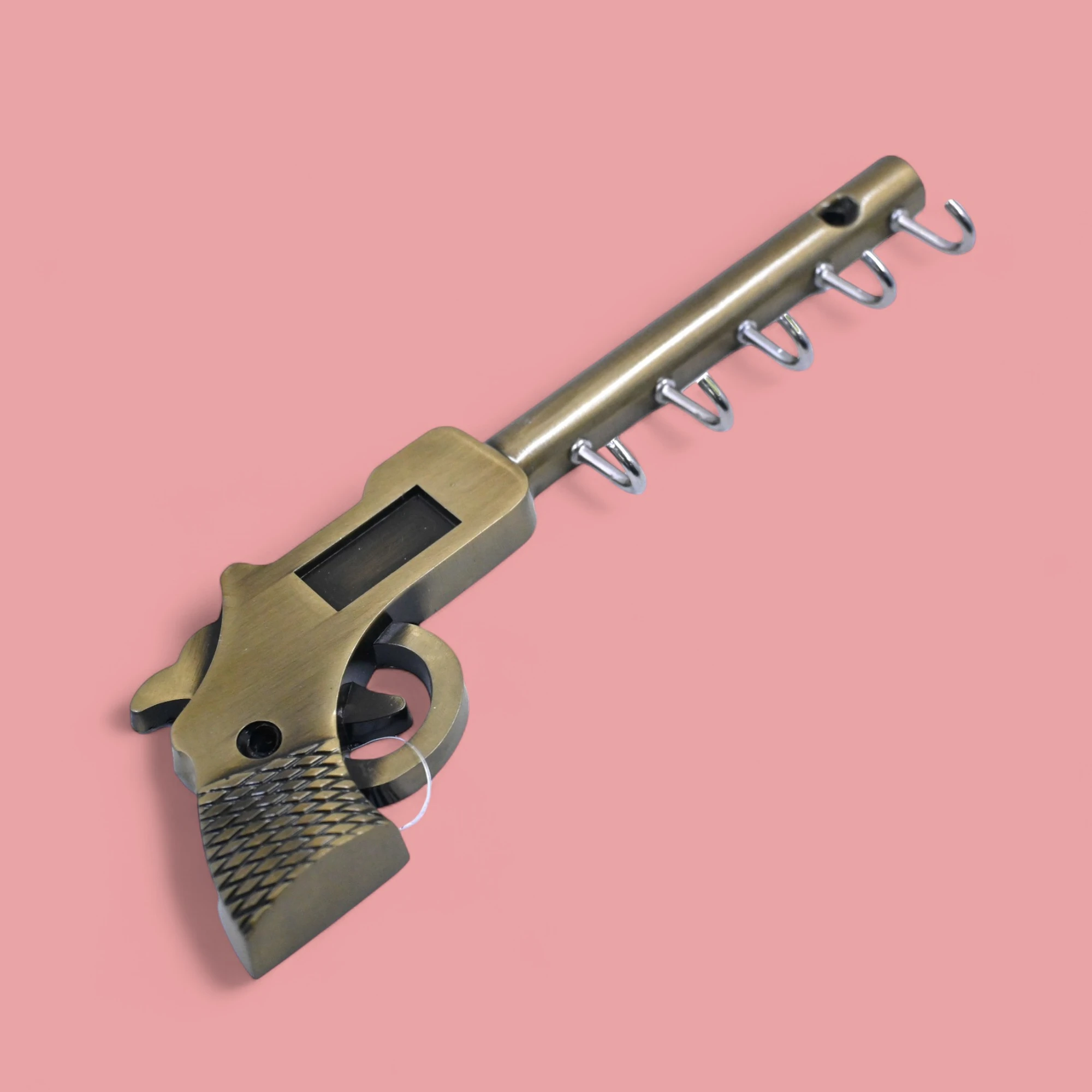 Take your key organization to the next level with our unique Gun Shaped Metal Key Holder. This eye-catching design is perfect for anyone who loves a touch of intrigue and creativity in everyday items.