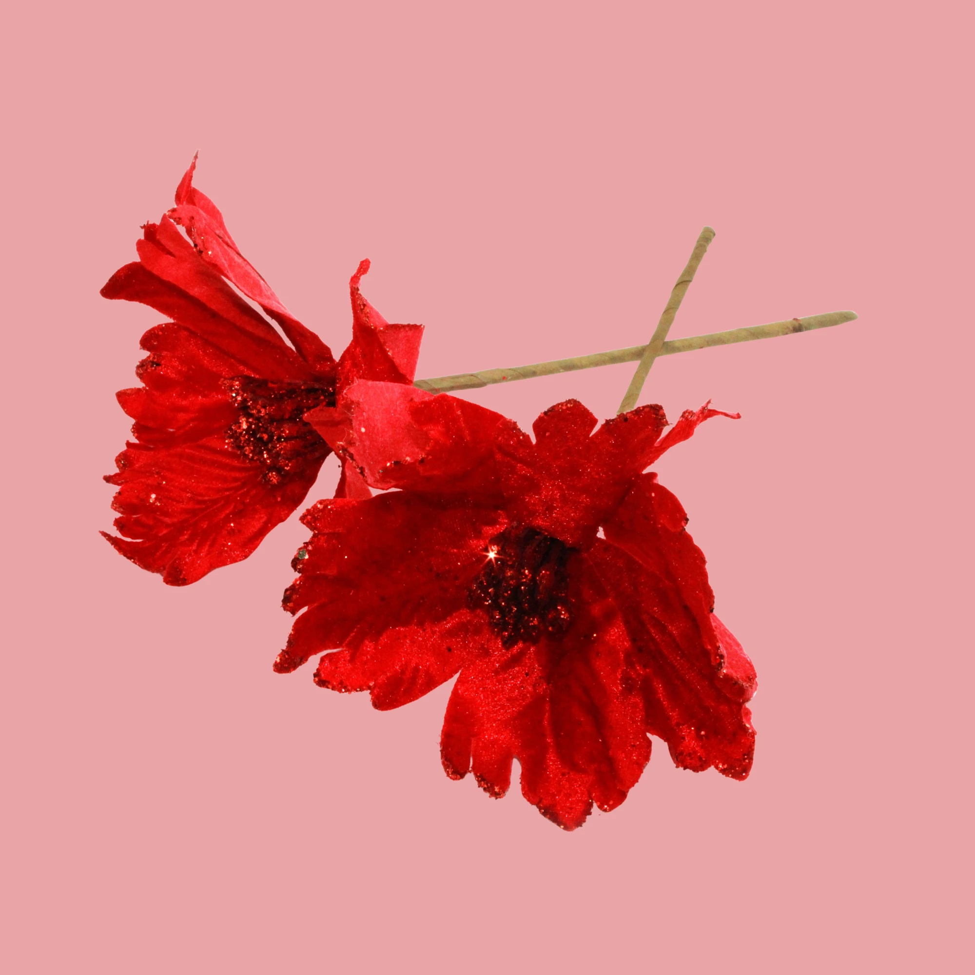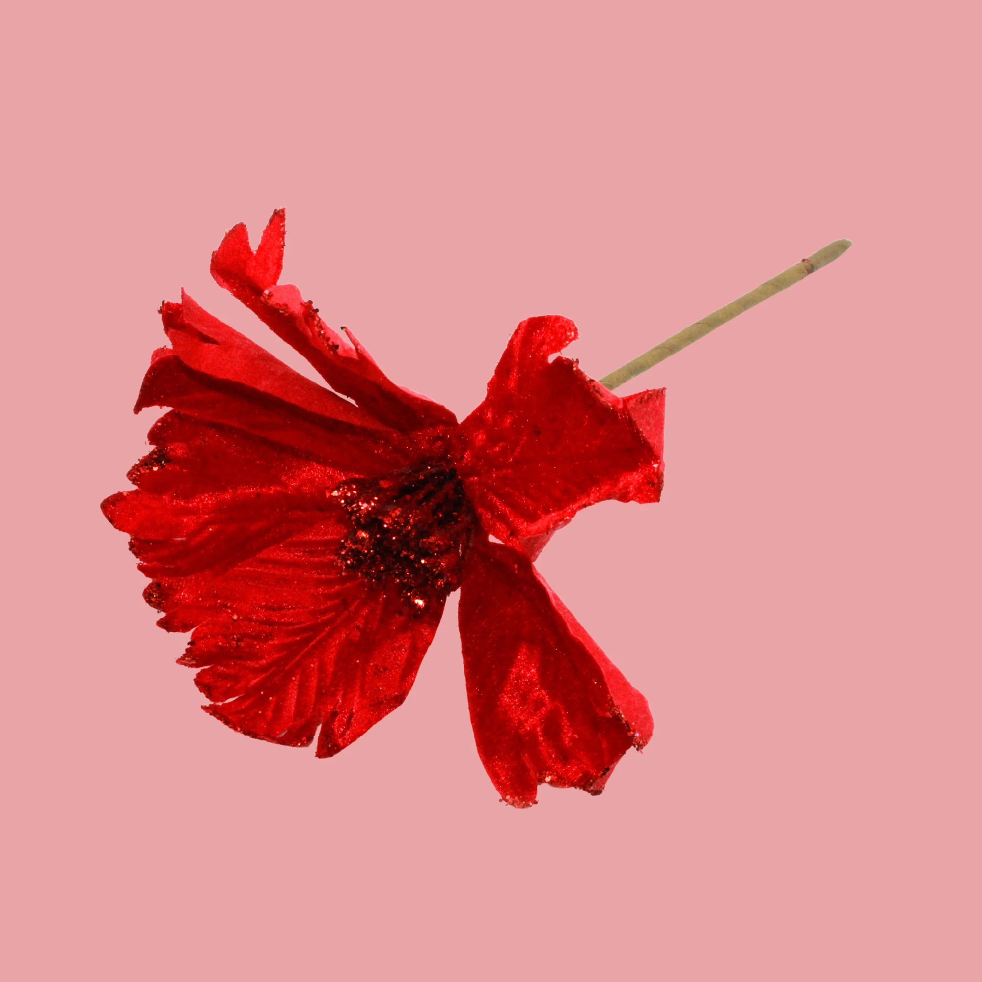 VELVET POINTSETIA FLOWER STICK RED BIG