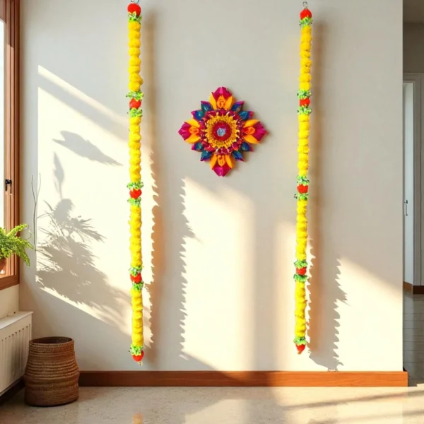 Brighten up your celebrations with the lively Gonda Ladi Big set, featuring two stunning pieces of traditional decoration, each stretching 5.5 feet in vibrant red and yellow hues. Perfect for festivals, weddings, or any joyous occasion, these Gonda Ladi add an instant pop of color and cultural charm to any setting.