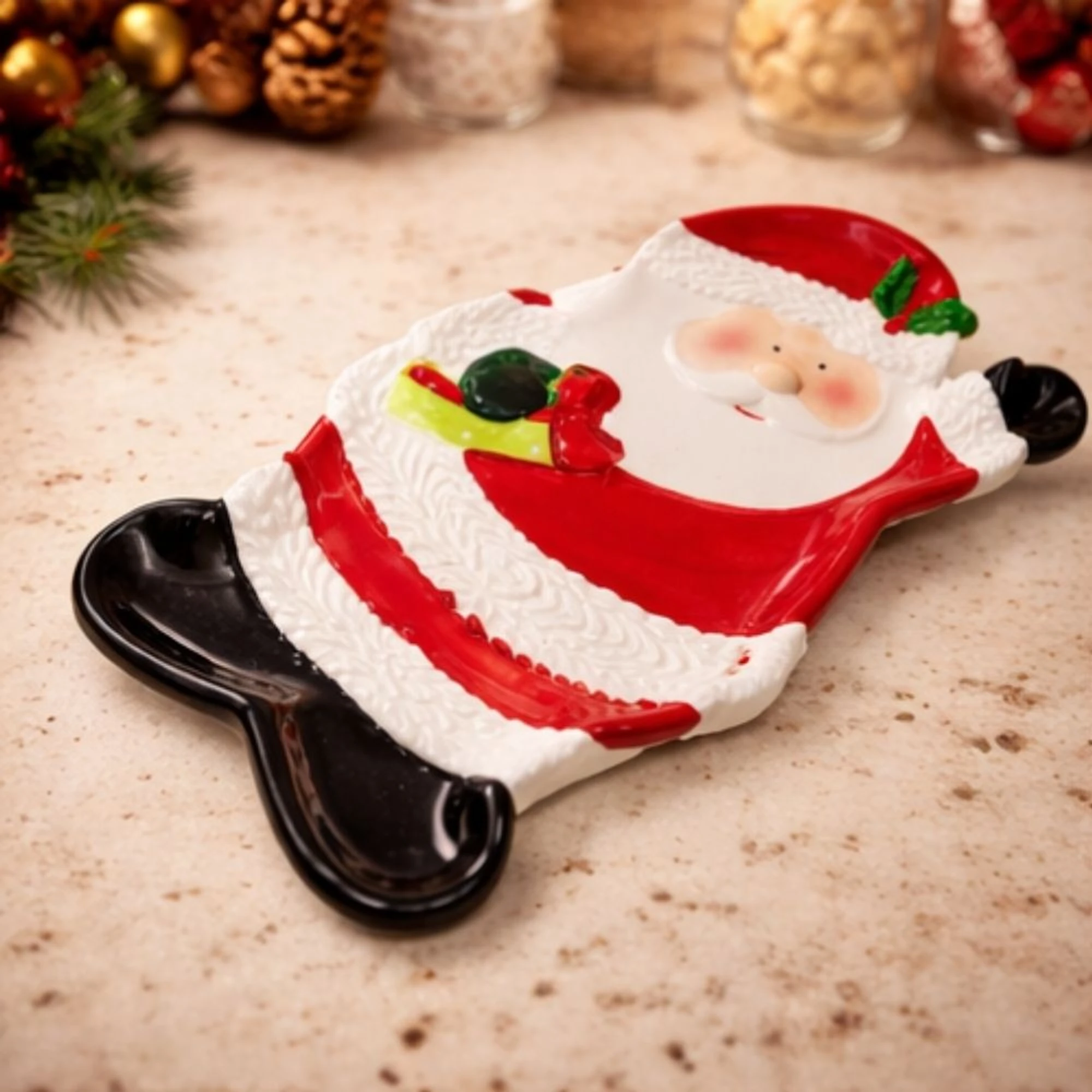 Festive Santa Claus Christmas Tree-Shaped Dish