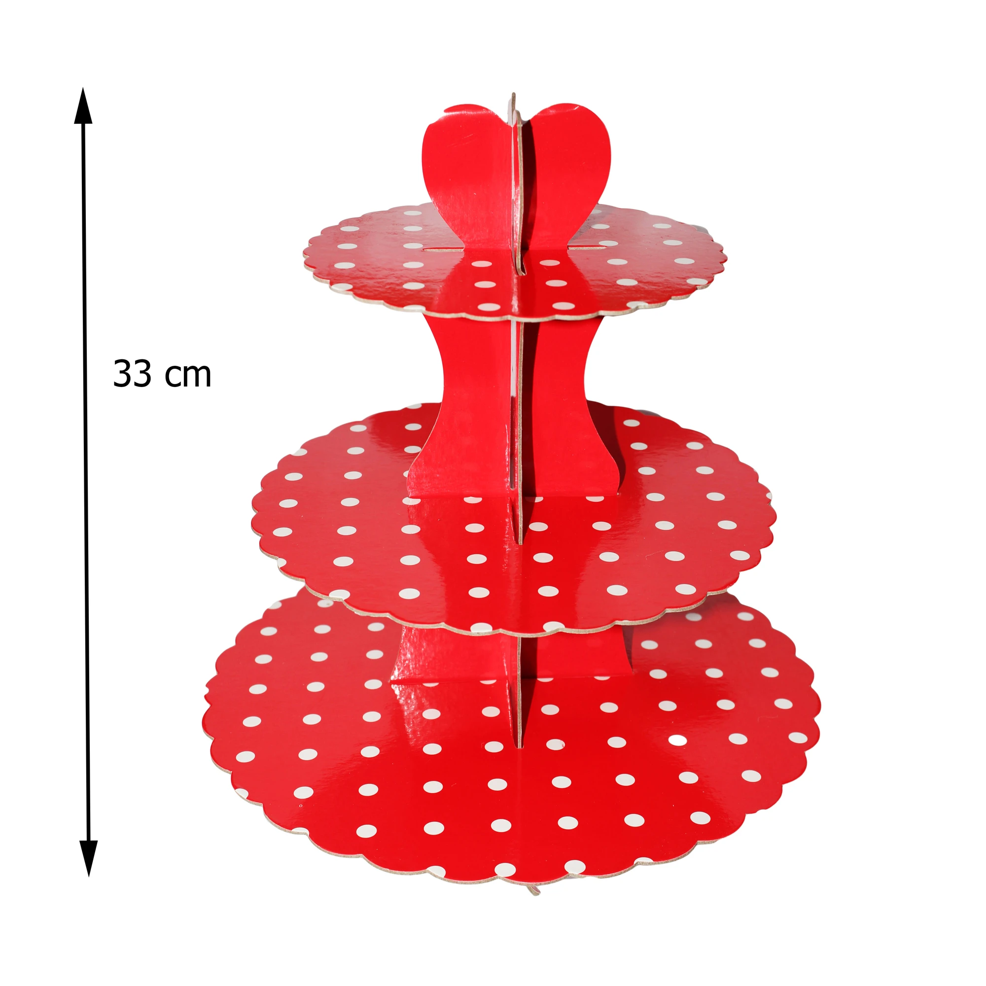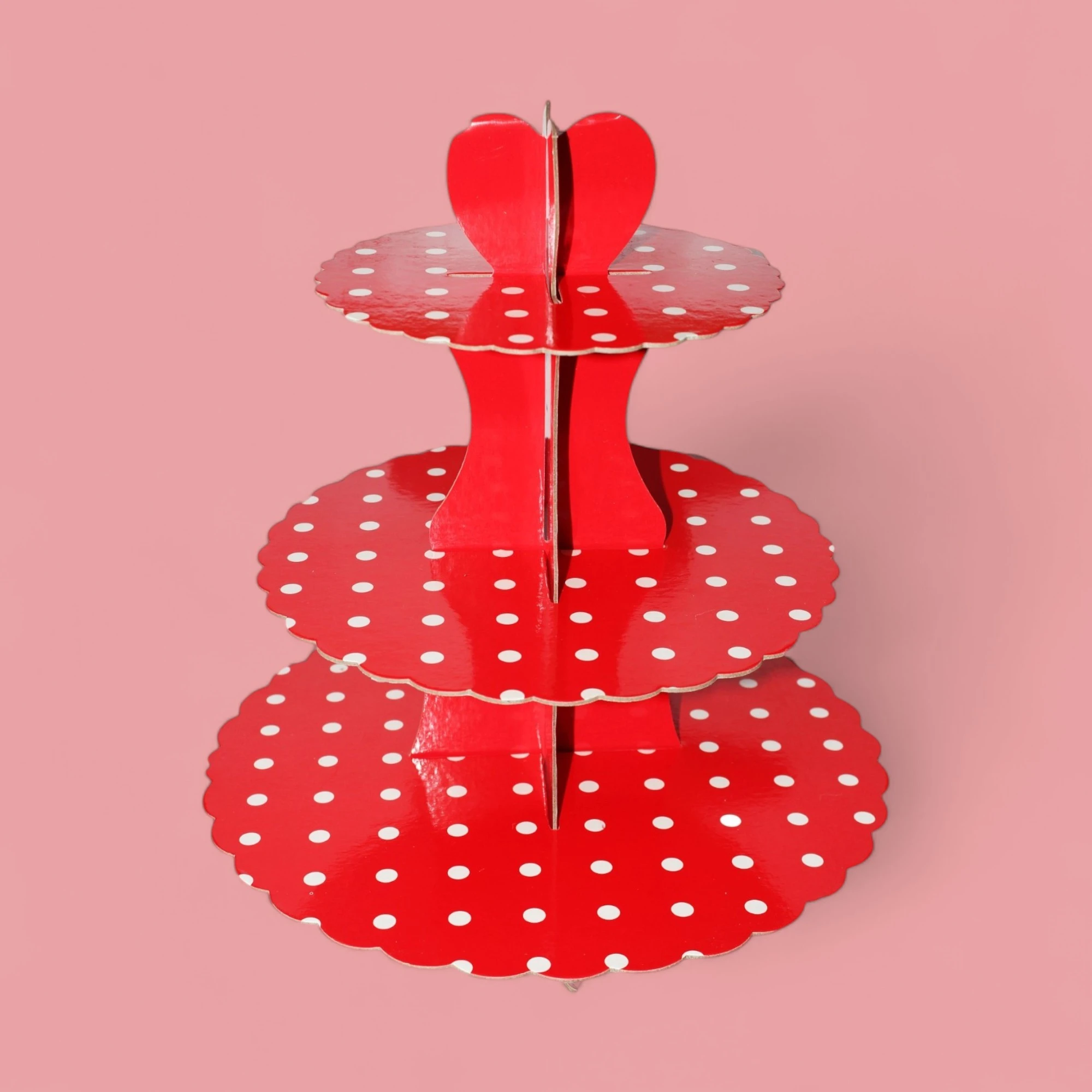 Transform any gathering into a delightful event with our 3-Tier Cake Stand in cheerful red polka dot theme. This vibrant piece adds a charming touch to parties, birthdays, or even casual get-togethers.