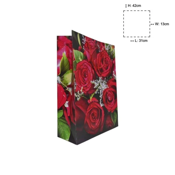These White Fillers Red Roses Paper Bags are the perfect blend of elegance and practicality. Ideal for any occasion, these medium-sized bags measure 30 x 41.5 x 12 cm, offering generous space for your treasures.