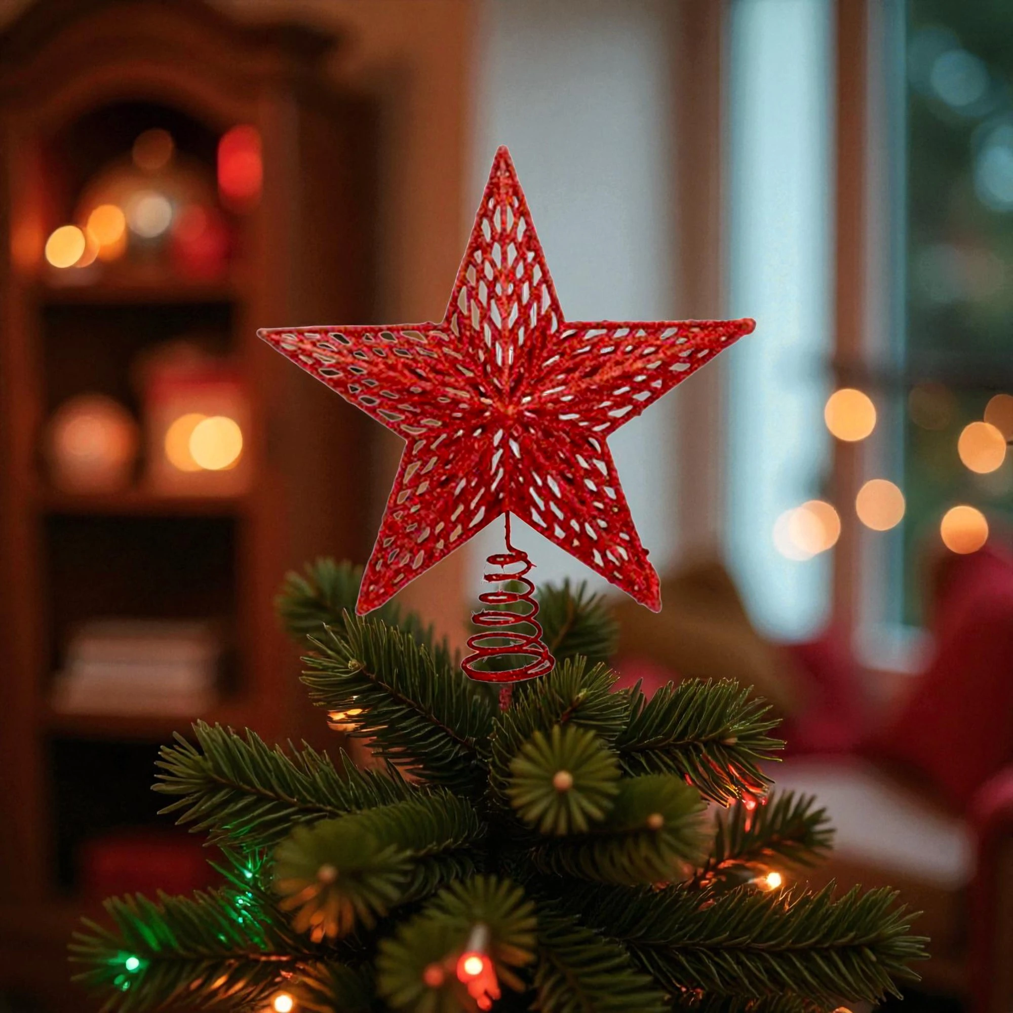 XMAS Glitter Star Tree Topper Red 19*23 CM