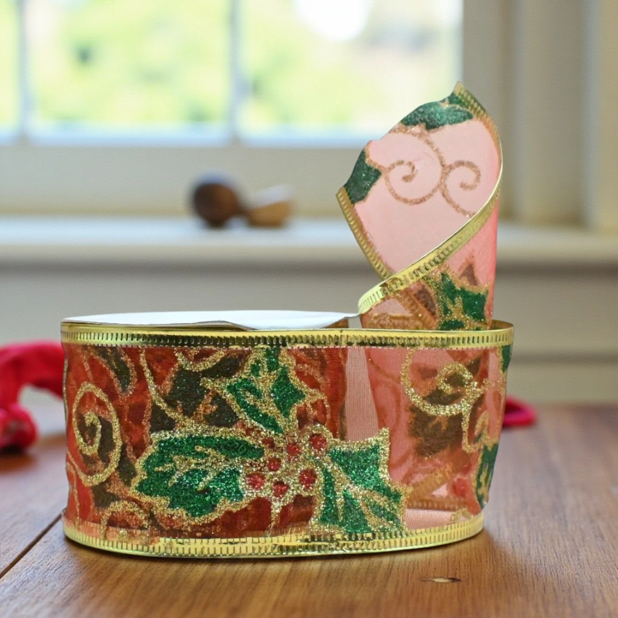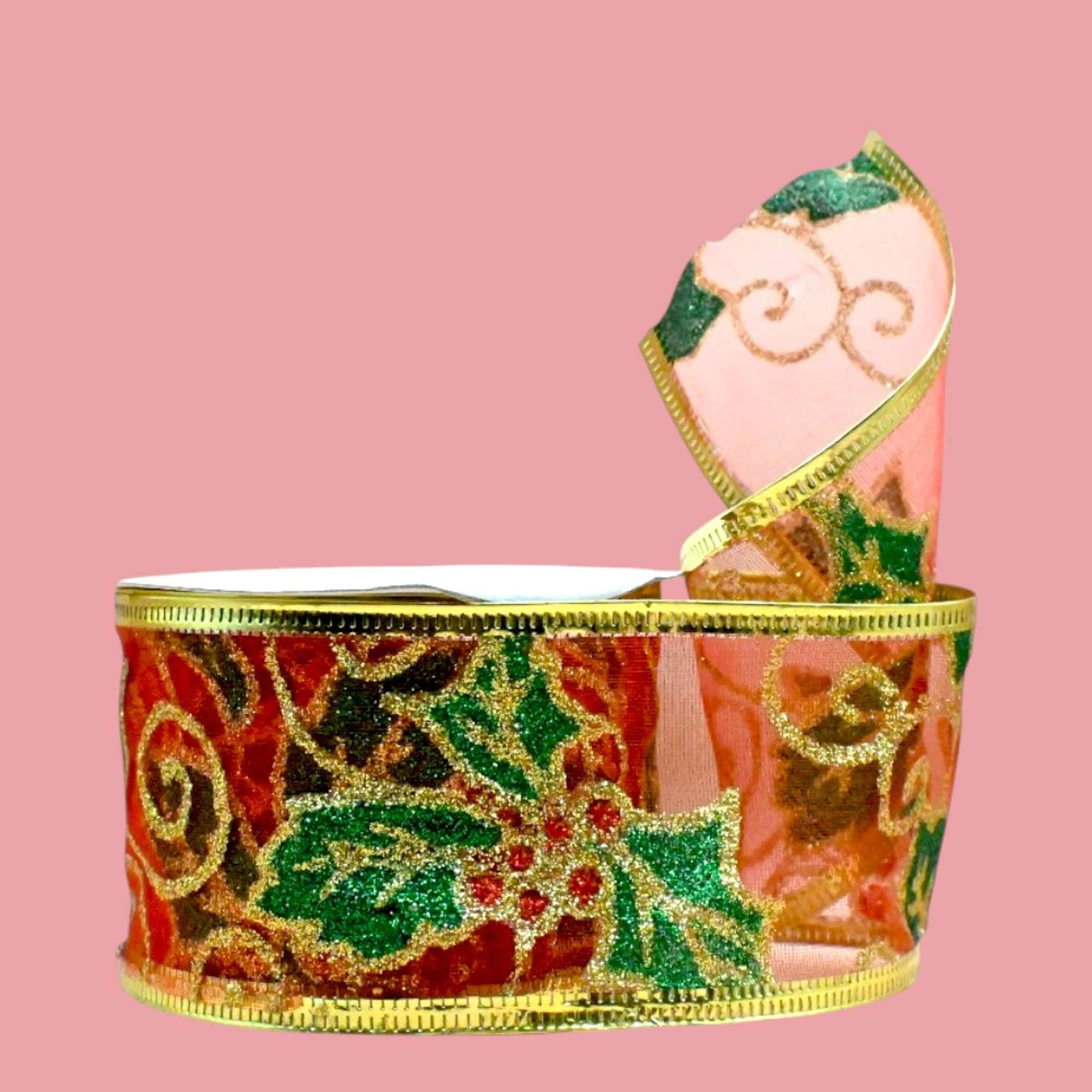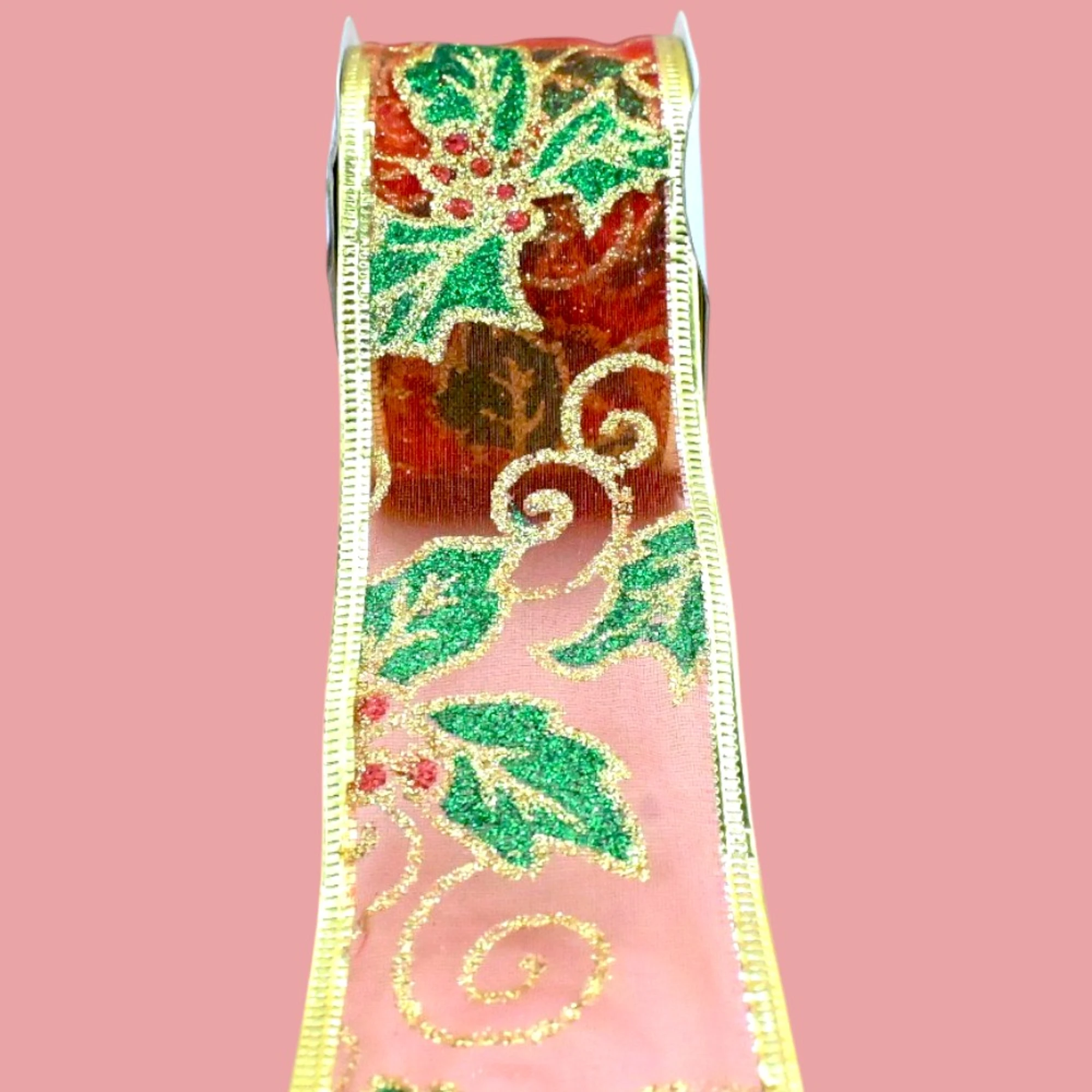 Wrap your holiday gifts with a touch of elegance using our XMAS Red Holly Leaf Wired Organza Ribbon. This 5cm wide decorative ribbon features festive holly leaf designs, perfect for sprucing up any package. With 2.7 meters on each roll, you have plenty of length to get creative.