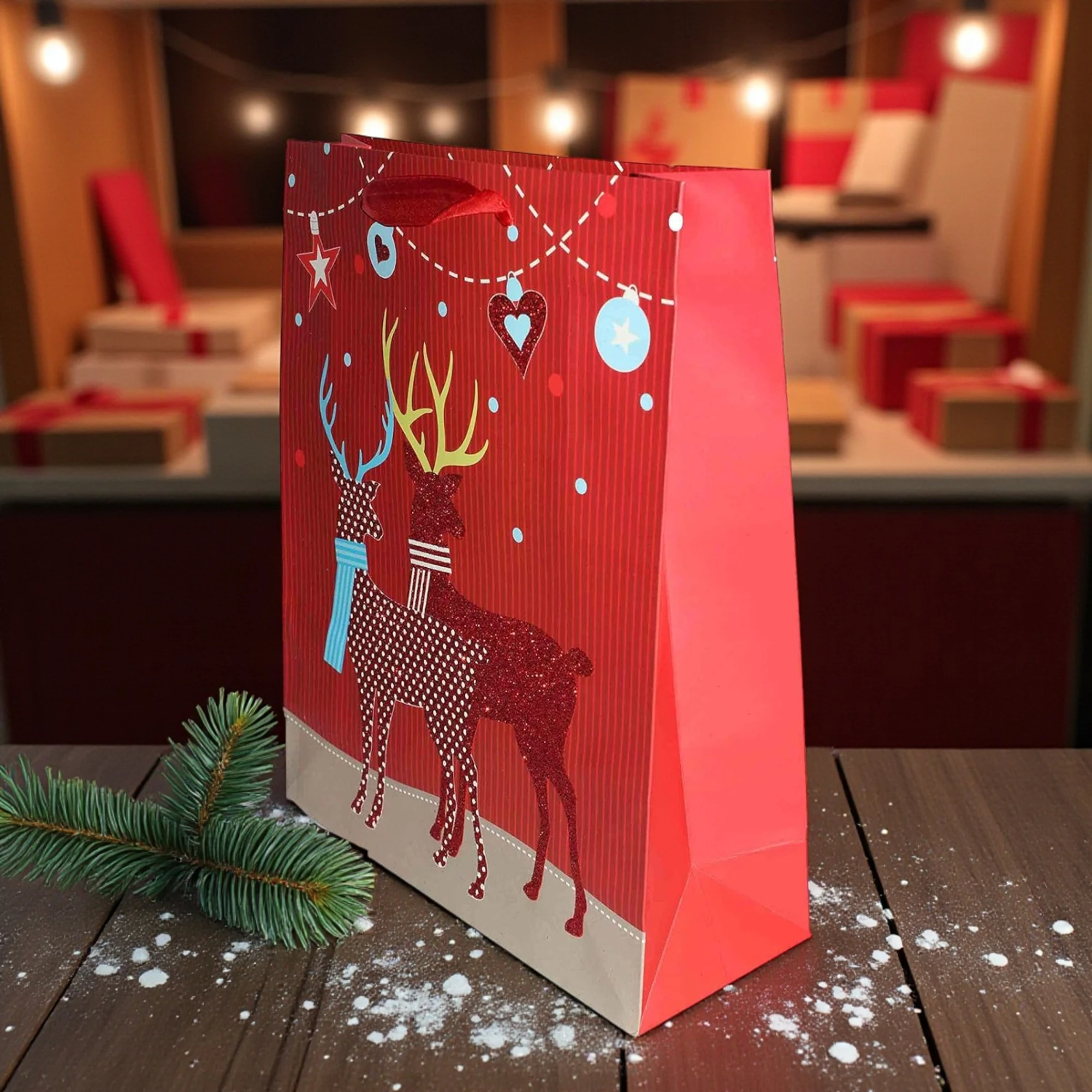 The playful reindeer design is sure to be a hit with kids and adults alike, sparking joy even before the gift is opened. They’re not just bags; they’re a festive experience in themselves!