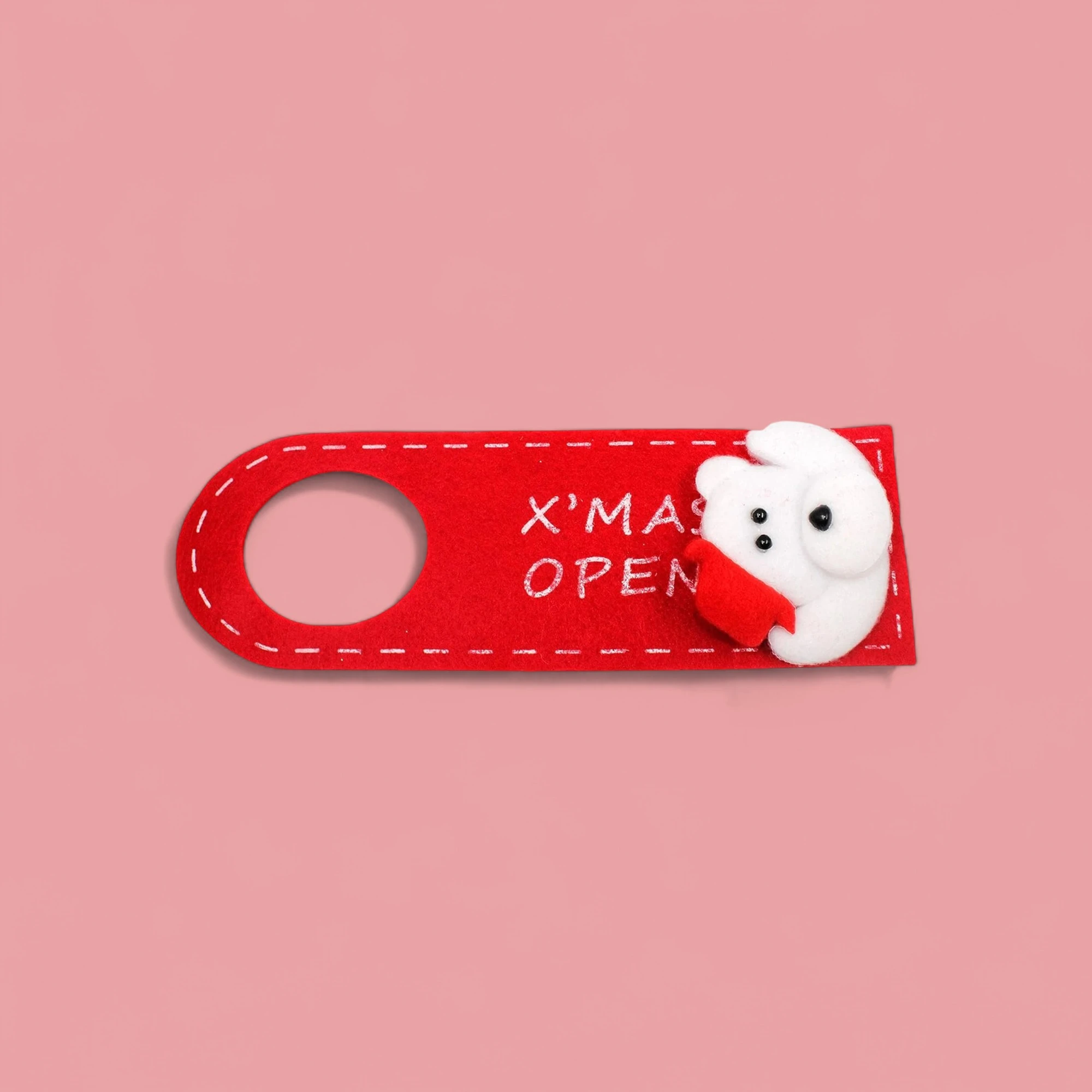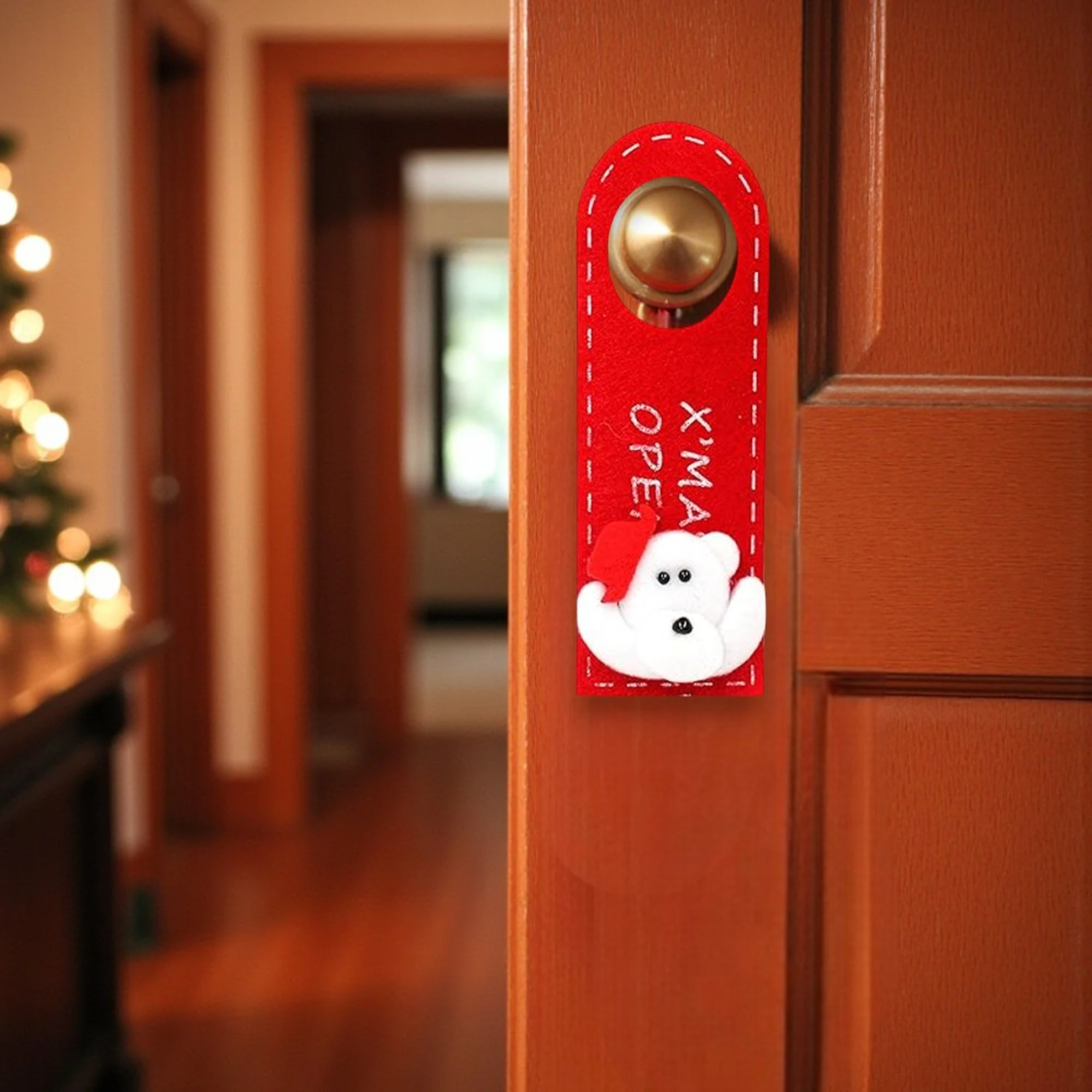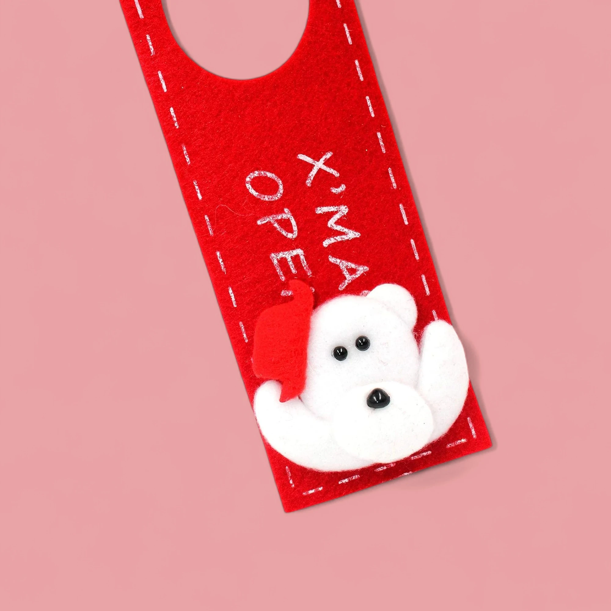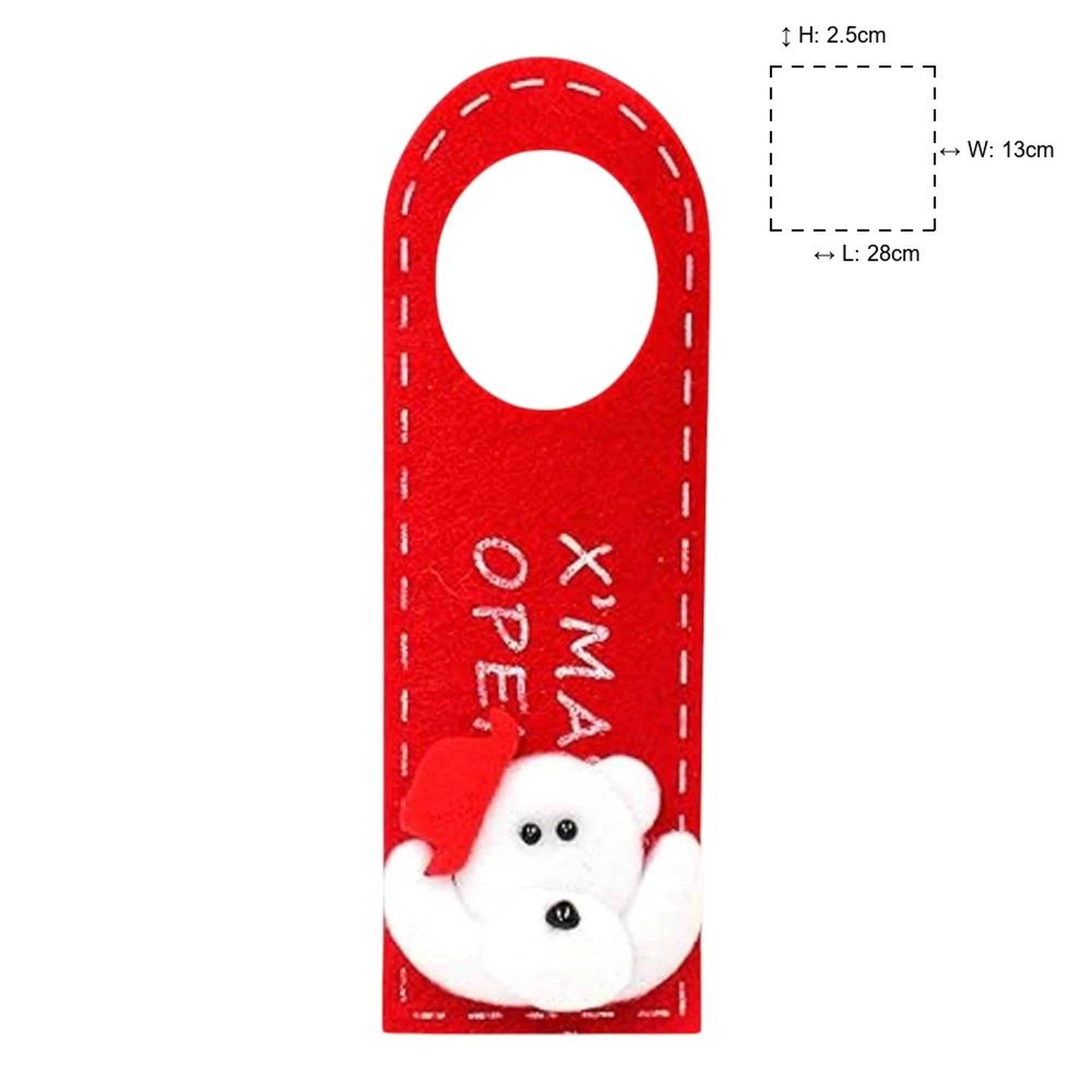 1Add a sprinkle of holiday cheer to your home with our charming XMAS Teddy Felt Door Hanger! This adorable, festive piece serves as a warm welcome to guests as they arrive at your doorstep. Featuring an irresistibly cute teddy bear donned in a cozy Santa hat, this door hanger is sure to bring smiles and good tidings.